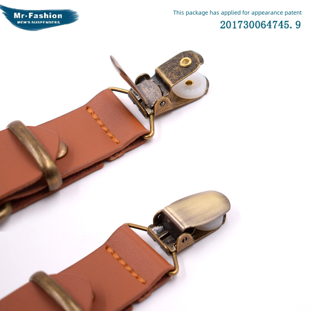 | nameOriginal | Cross-border source Jill Cool 3-clip leather 3-clip back strap clip monochrome Y-shaped suspenders 2.5 leather adult style |