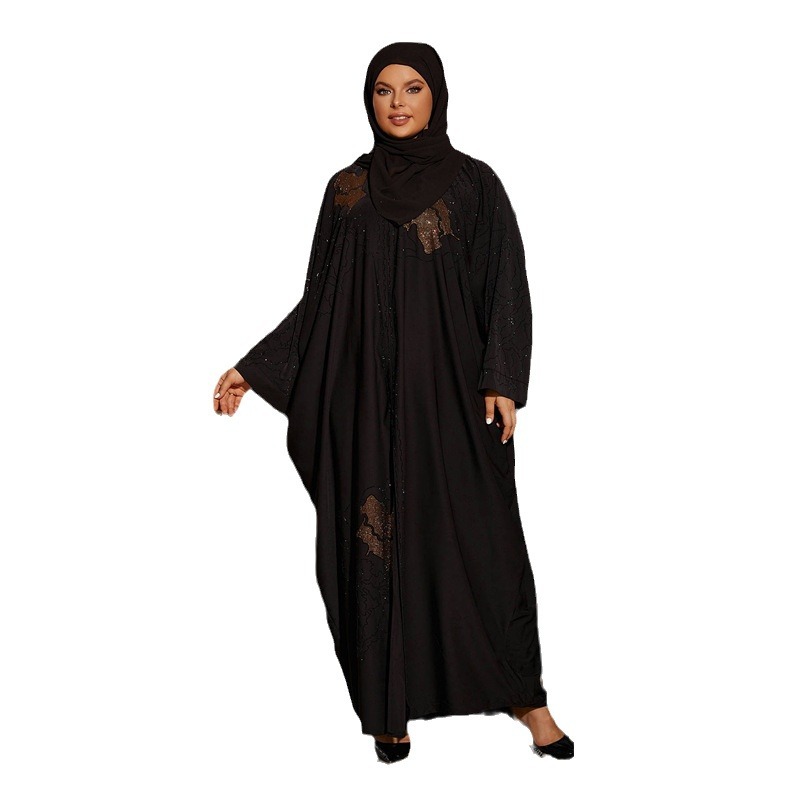 | nameOriginal | Cross-border source of goods Europe, America and Africa plus size black hot drilling robe Middle East Arab women bat sleeve robe with turban |