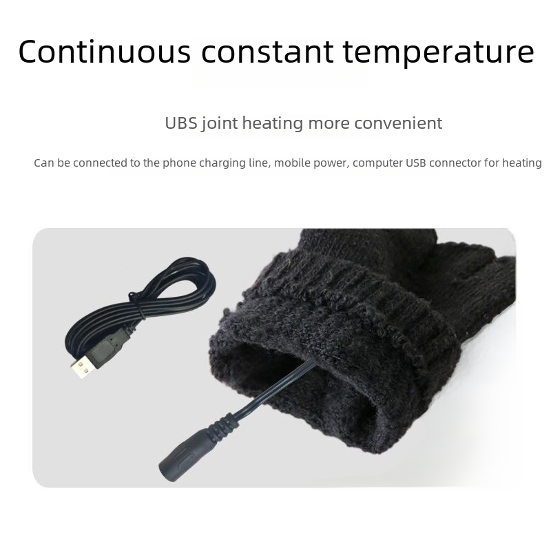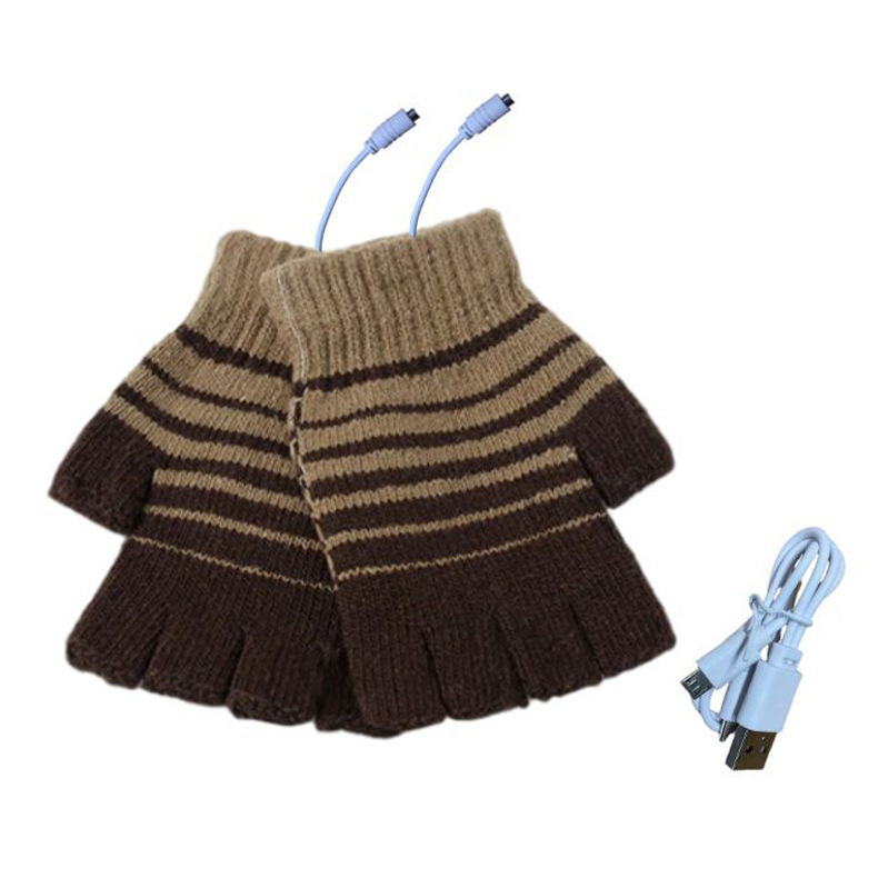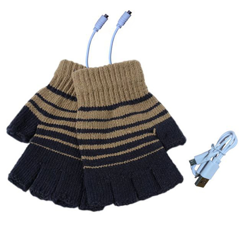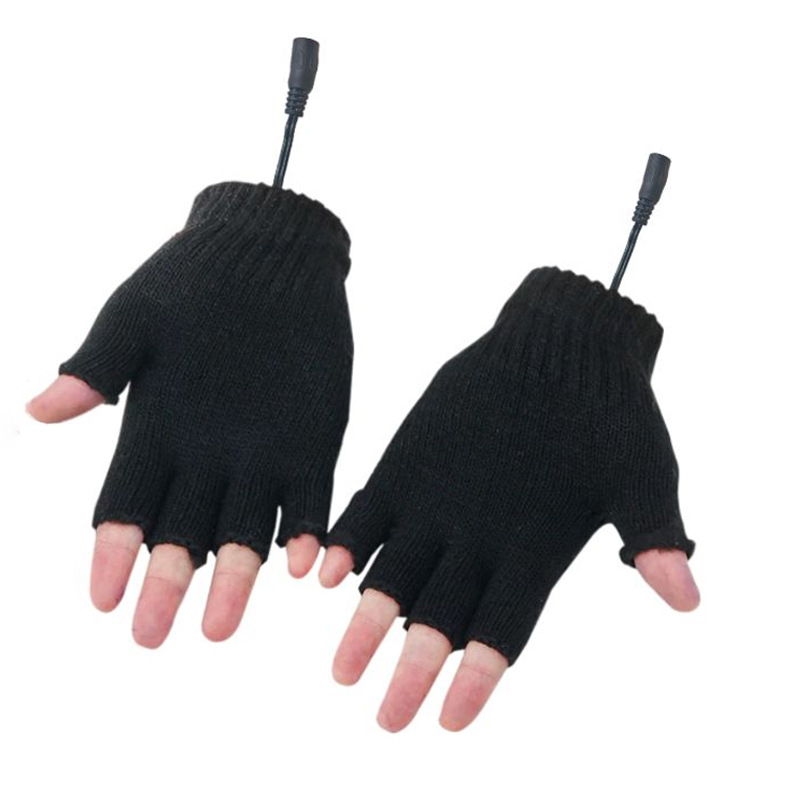 Cross-border source USB winter unisex knitted warm electric gloves mobile power electric half finger gloves