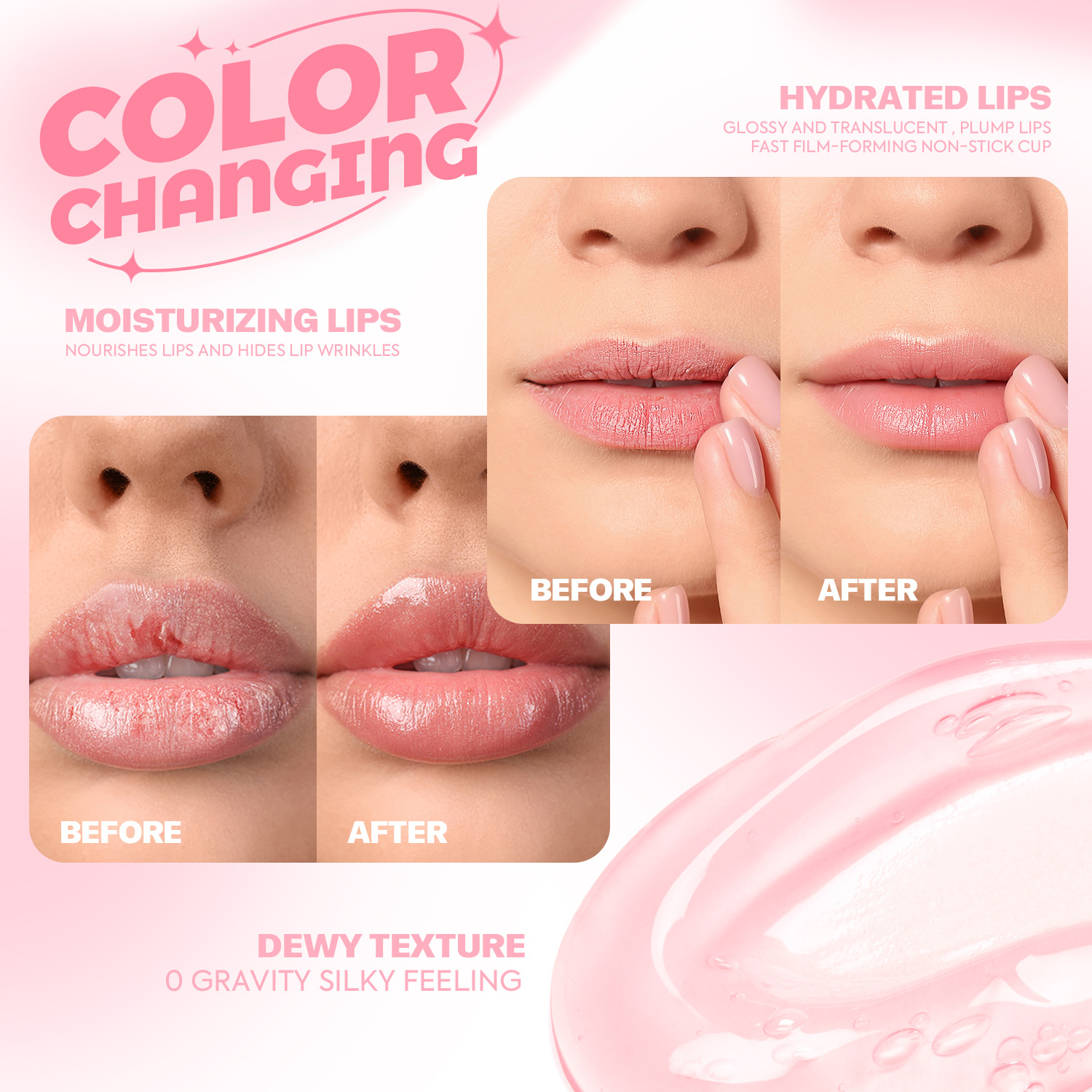 Cross-border special color changing lip oil fading lip lines fruit flavor softening lip cutin hydrating moisturizing anti-cracking lip gloss
