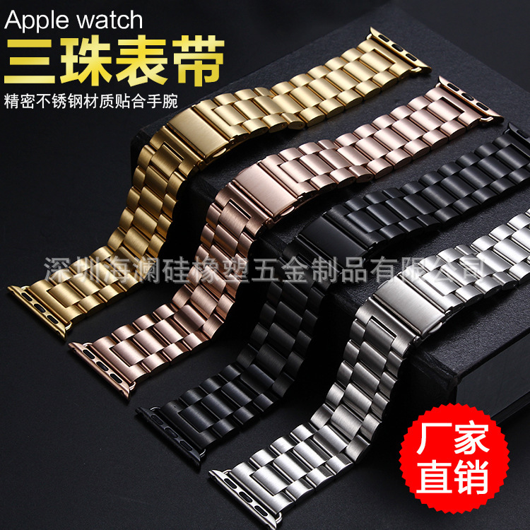 | nameOriginal | Cross-border Special for iwatch Butterfly Buckle Three Bead Stainless Steel Strap for apple watch apple watch Strap |