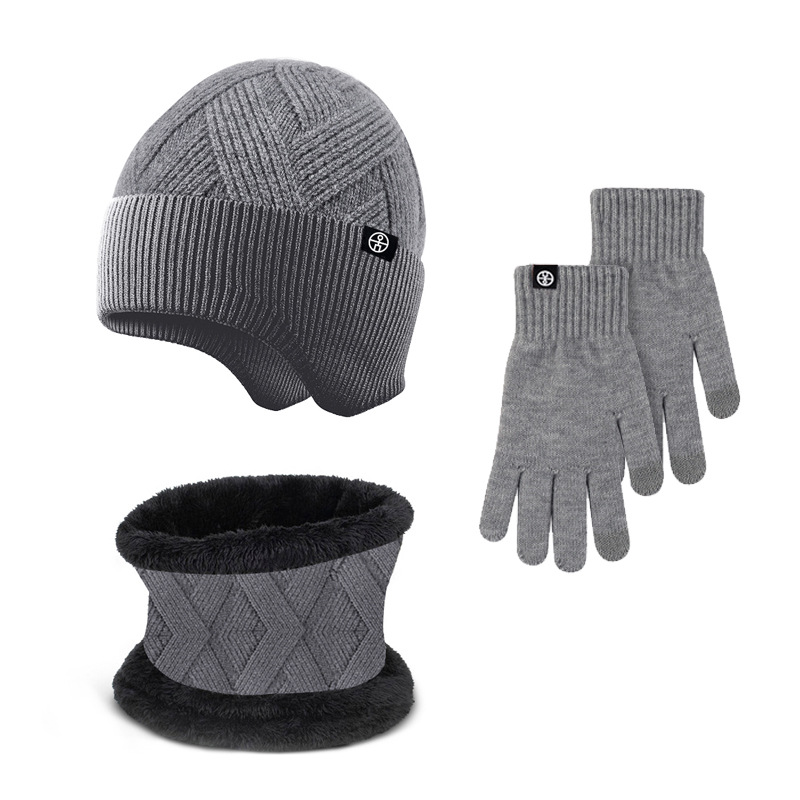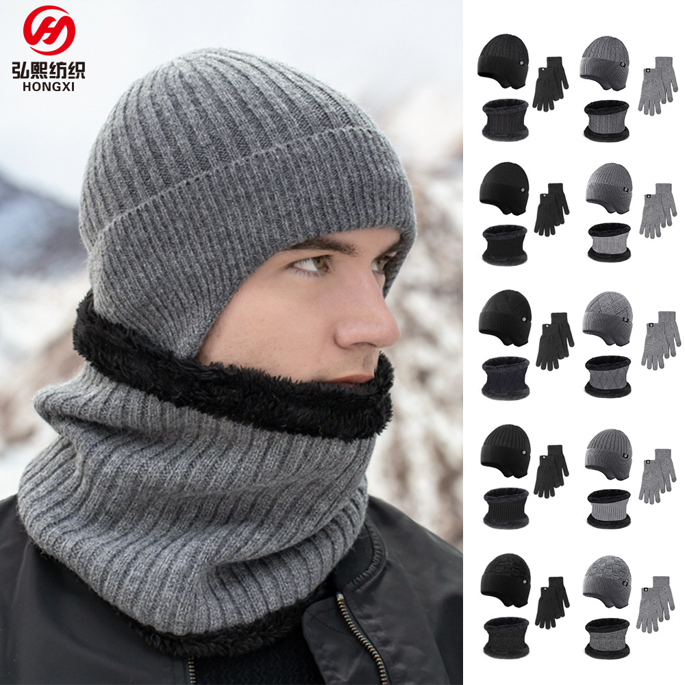 | nameOriginal | Cross-border special warm ear protection hat scarf gloves three-piece set winter outdoor velvet knitted hat three-piece set |