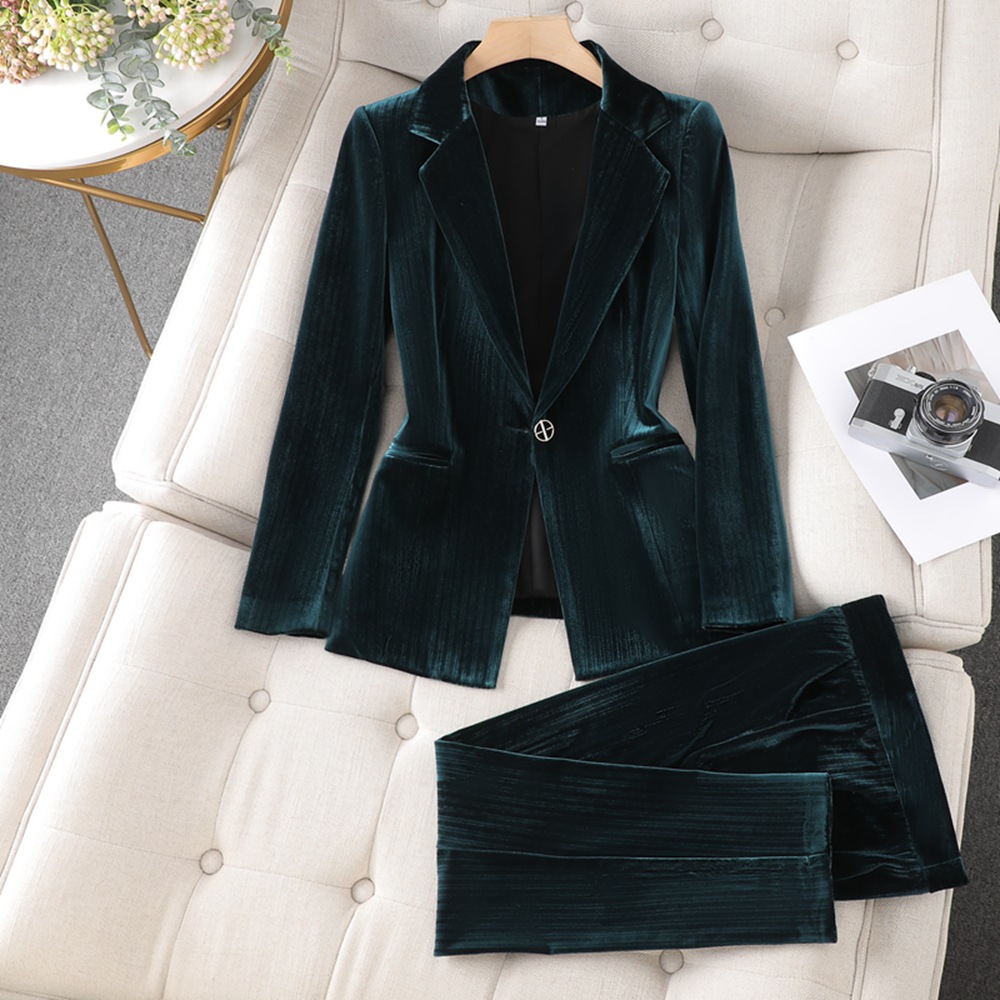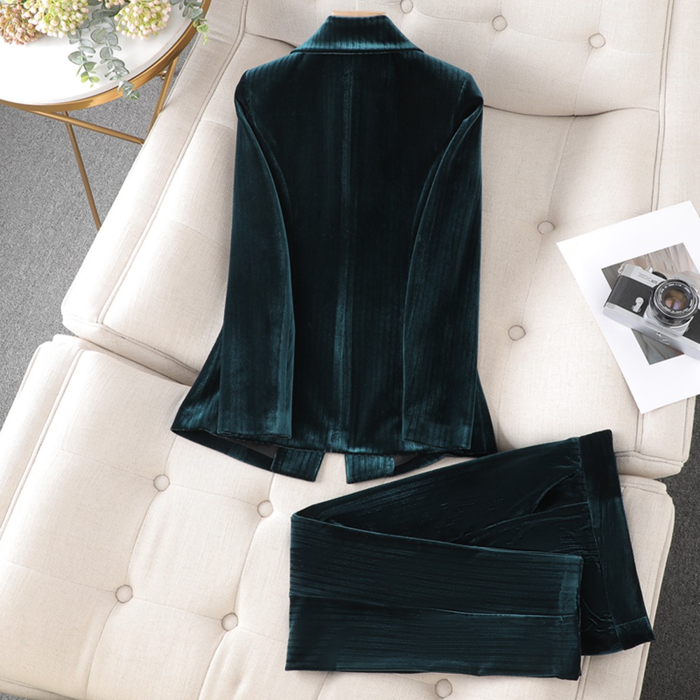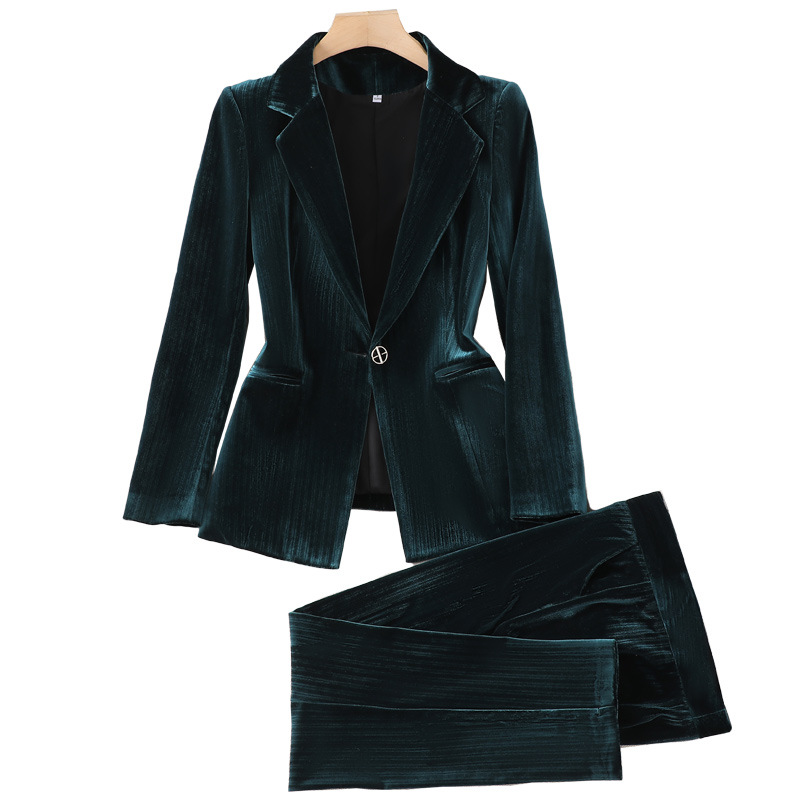 | nameOriginal | Cross-border spot green red feeling gold velvet small suit jacket women's early autumn new professional temperament overalls suit |