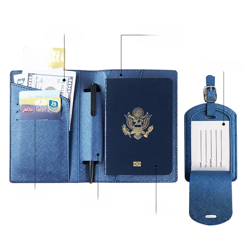 Cross-border spot wholesale cross pattern manual routing oil edge pu leather Passbook protective case luggage tag set