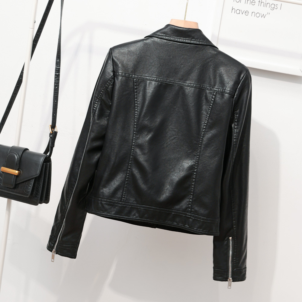 Cross-border Spring New Women's Simple Lapel Leather Jacket Short Biker Clothing PU Leather Casual Coat Sequins