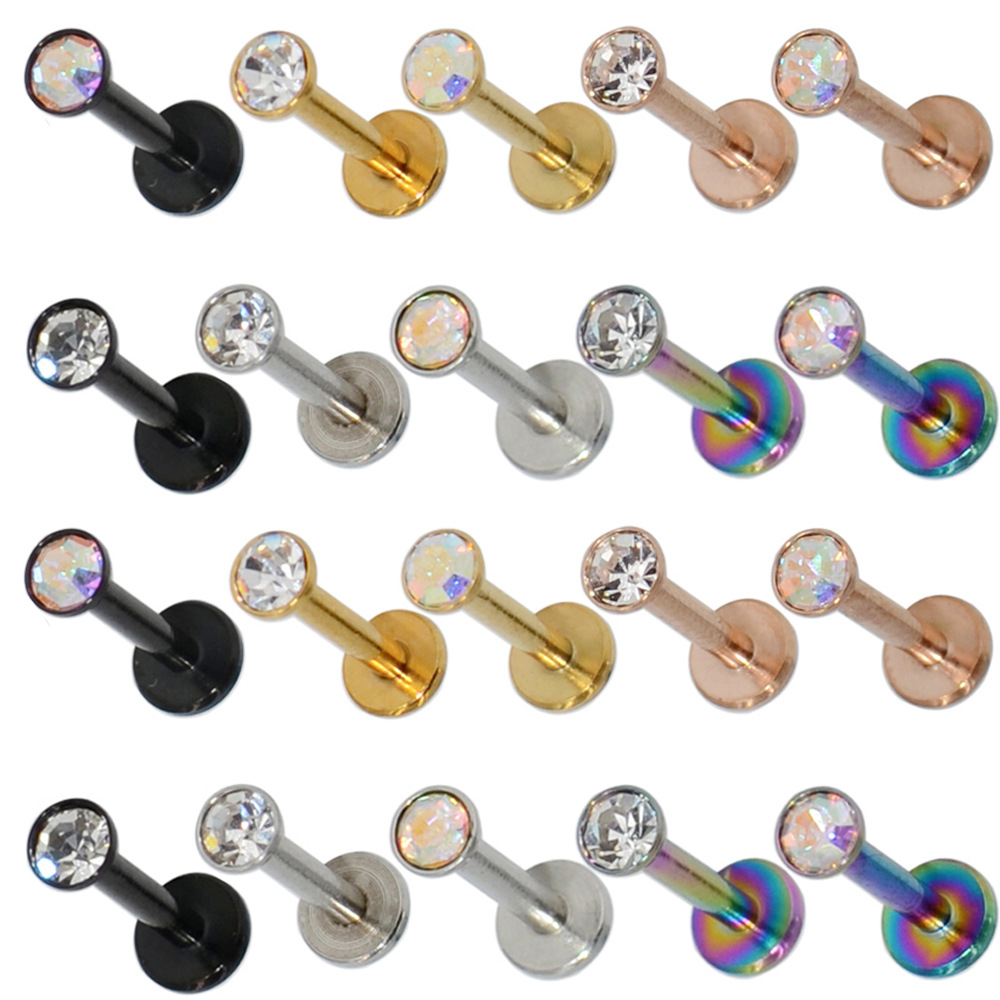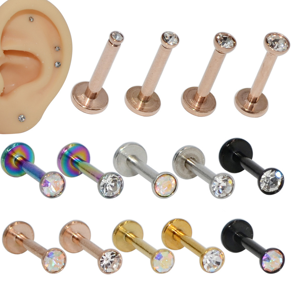 Cross-border stainless steel inner tooth lip nail electroplated color diamond lip ring T-shaped puncture internal thread small drill ear nail