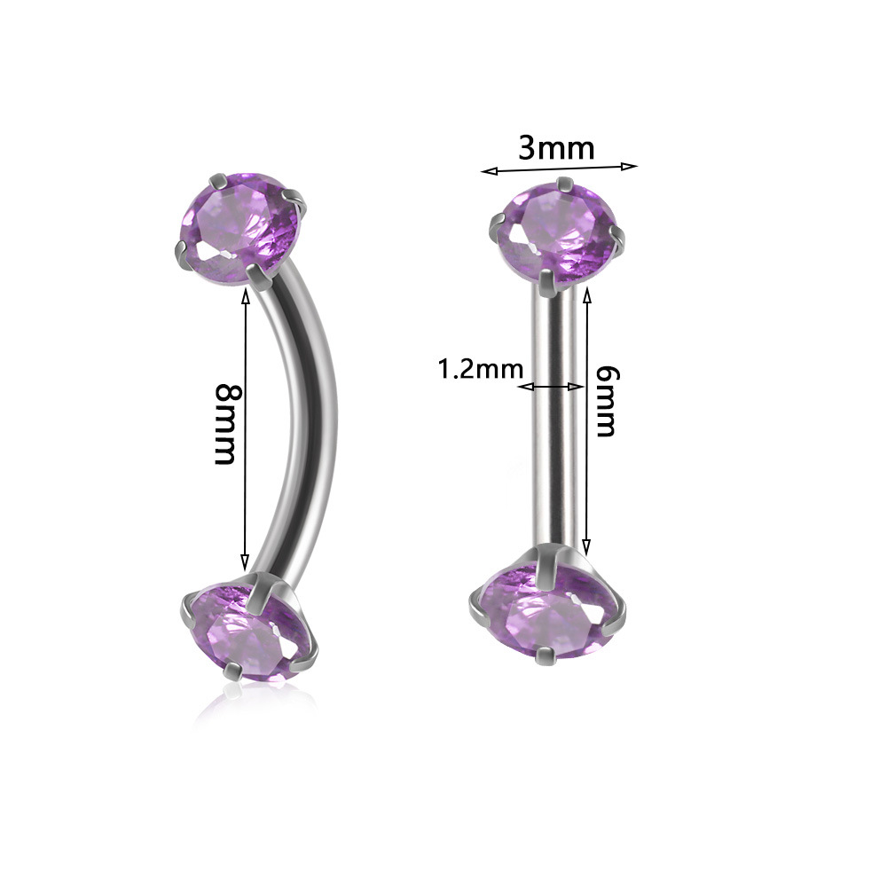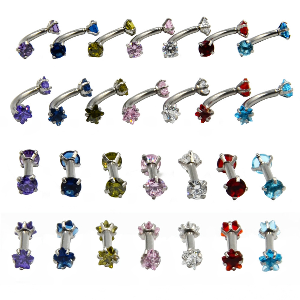 | nameOriginal | Cross-border stainless steel inner tooth zircon eyebrow nail double-headed five-star/round zircon curved rod eyebrow ring multi-color ear cartilage nail |