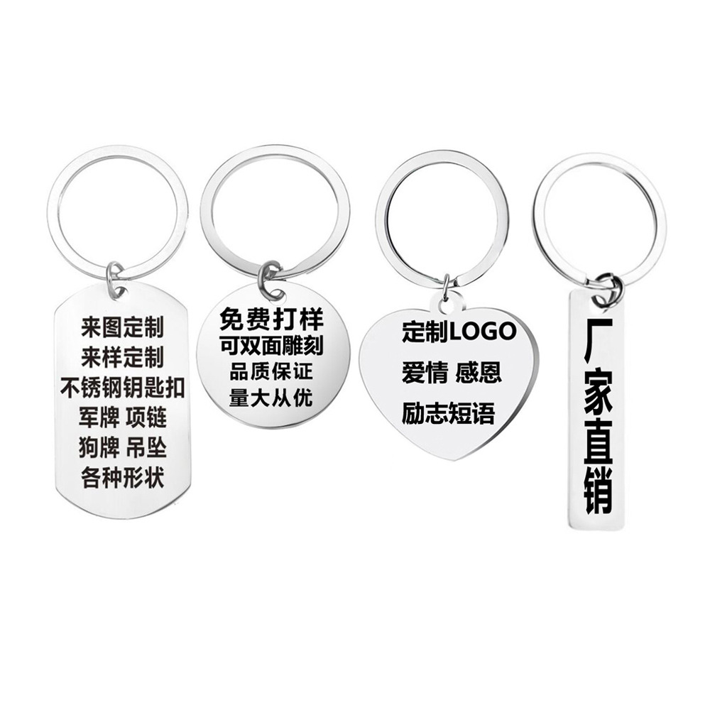 Cross-border Stainless Steel Keychain Military Brand Round Heart-shaped Rectangular Laser Engraving Logo Metal Diy Accessories