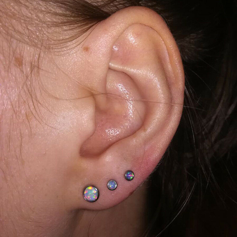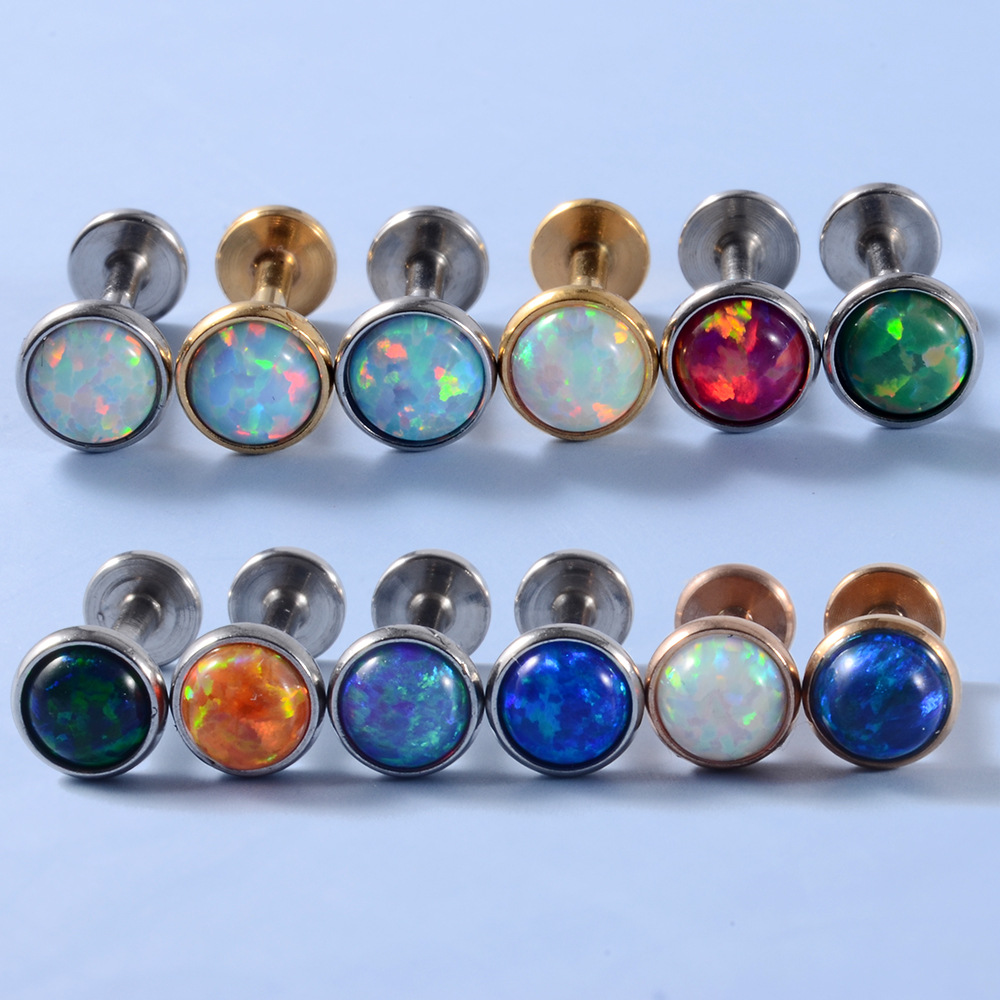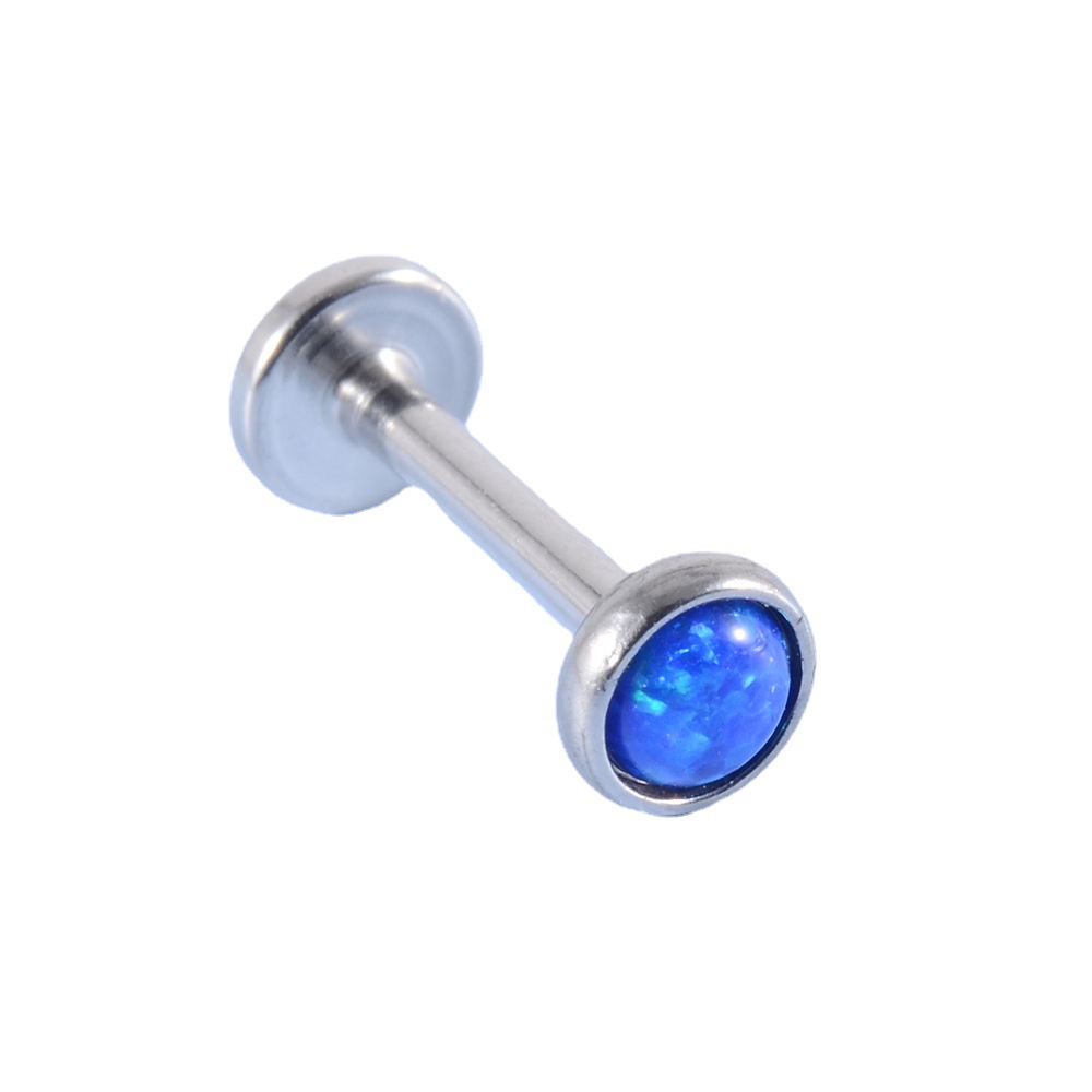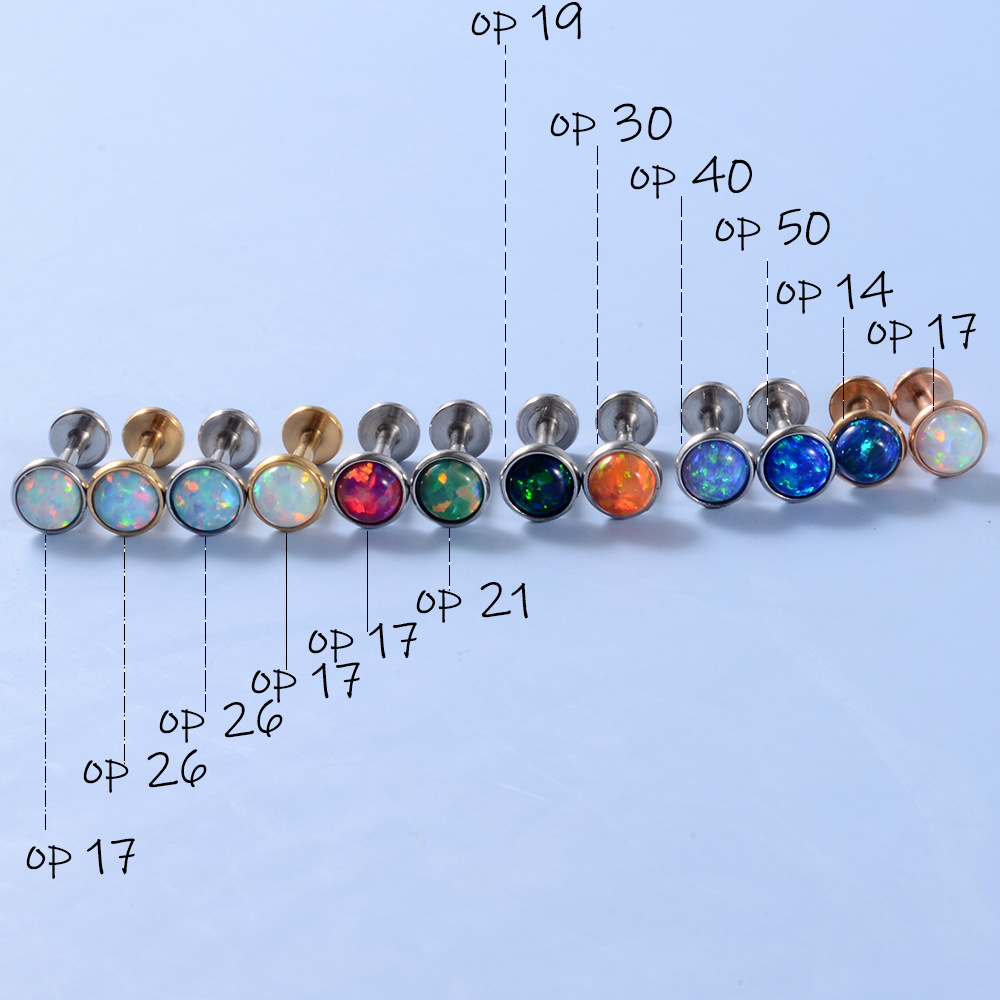 Cross-border Stainless Steel Opal Lip Nail T-shaped Inner Tooth Straight Rod Earrings Multicolor Opal Internal Thread Soft Ear Bone Nail Earrings