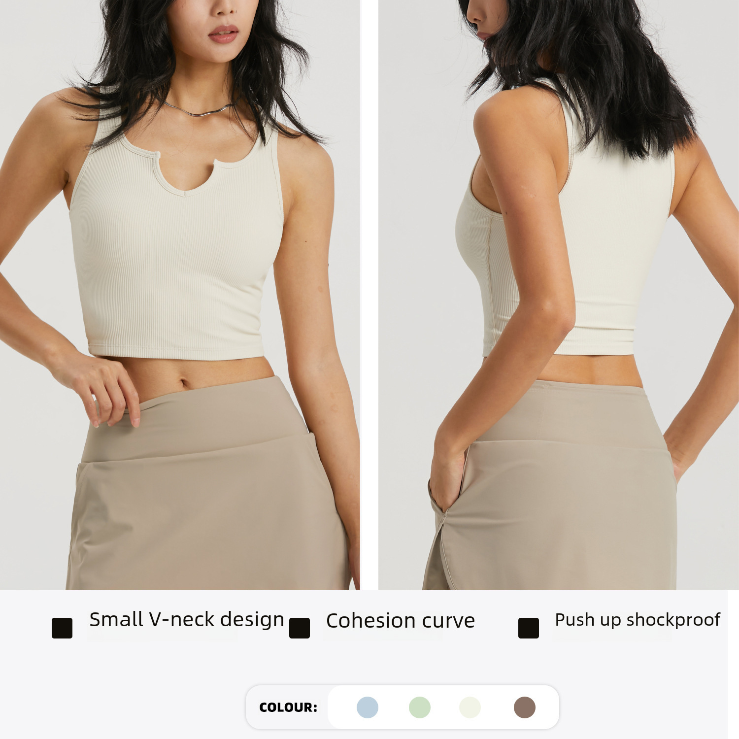 Cross-border Strict Selection of Spring and Summer Rib Sports Bra Dopamine Shockproof Yoga Underwear Fixed Cup Fitness Vest Top