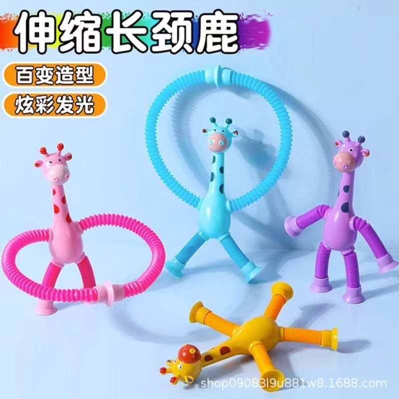 | nameOriginal | Cross-border suction cup changeable giraffe luminous telescopic tube decompression toy screaming chicken robot cartoon retractable decompression |