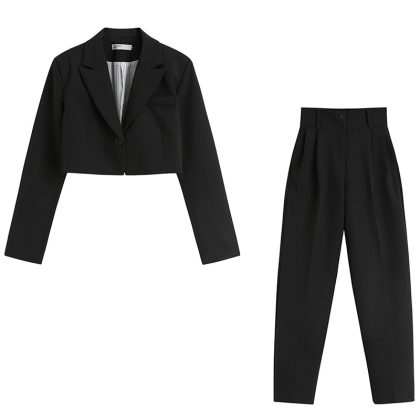 | nameOriginal | Cross-border Suit European and American 2022 Autumn Temperament Short Suit Jacket + Slimming High Waist Dagging Suit Pants for Women |