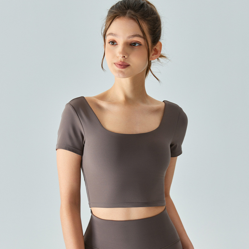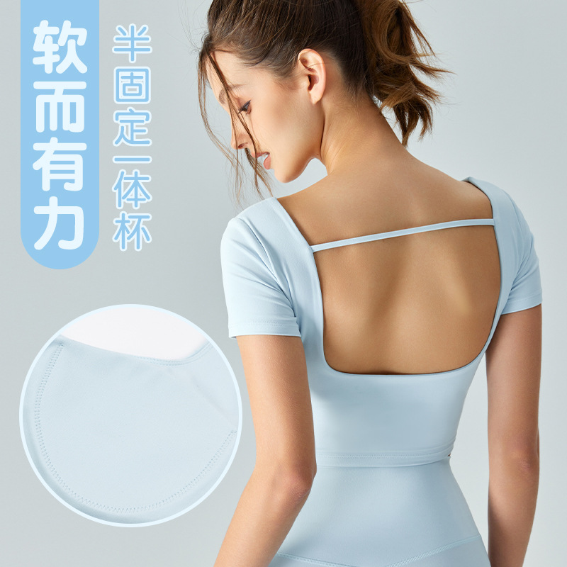 | nameOriginal | Cross-border Summer New Yoga Short-sleeved Women's Back Shoulder Strap Sports Short Shirt Semi-fixed Cup-shaped Beauty Back Fitness Top |
