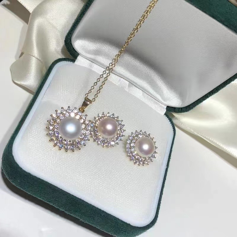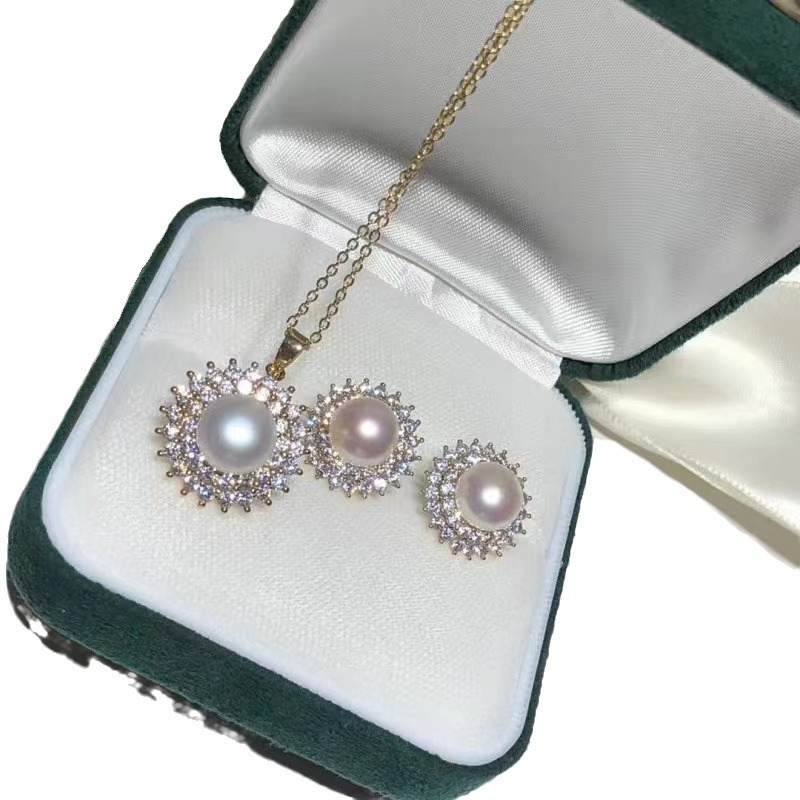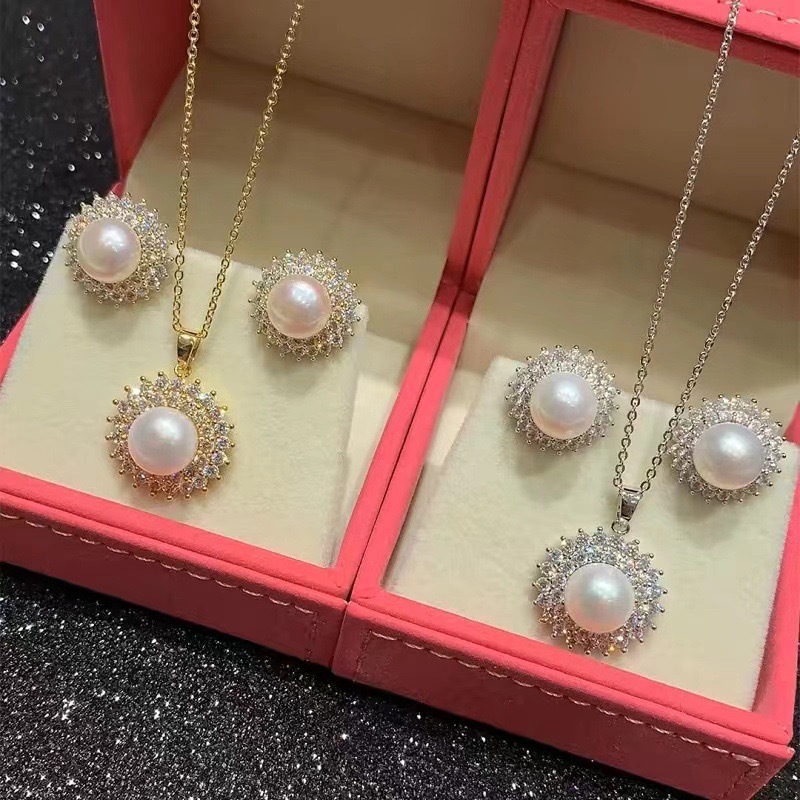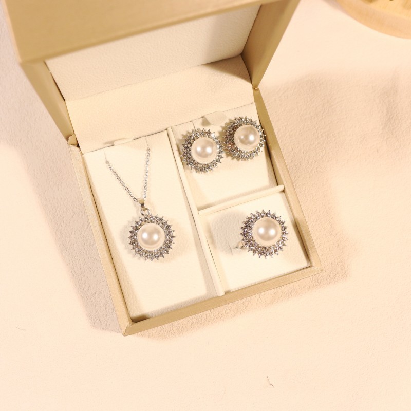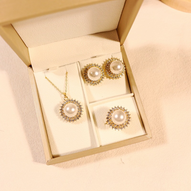 | nameOriginal | Cross-border sunflower pearl necklace three-piece clavicle chain new jewelry pearl earrings ring suit hot sale |