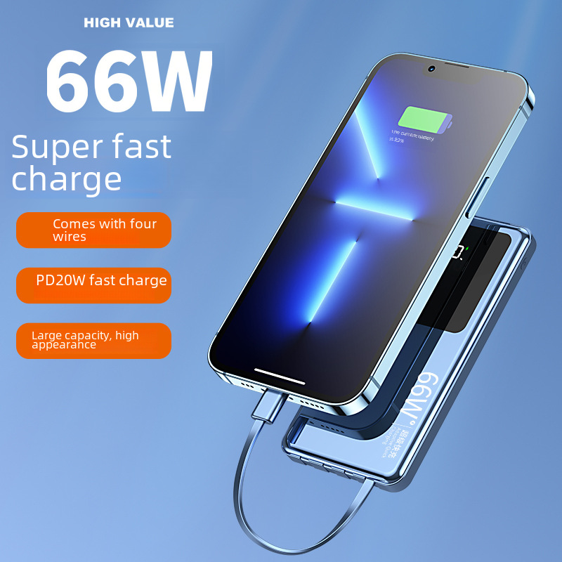 | nameOriginal | Cross-border super fast charging 66W mobile power supply super large capacity 20000 mA with cable compact portable charging treasure |