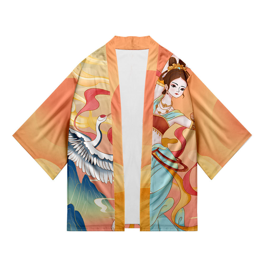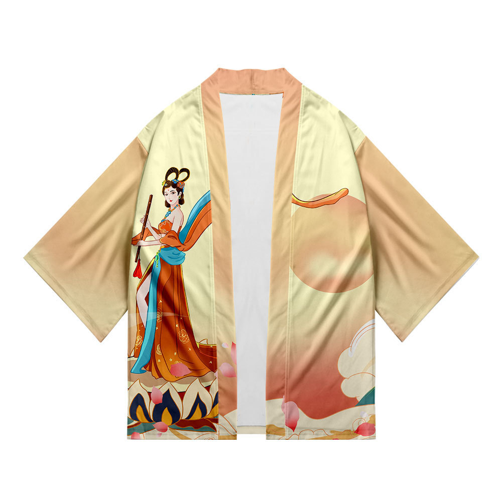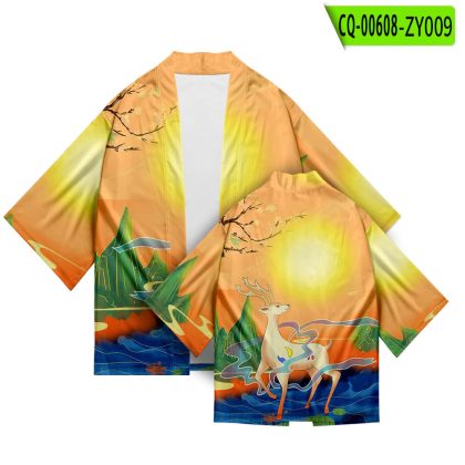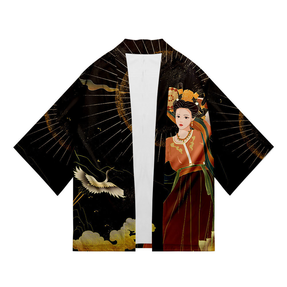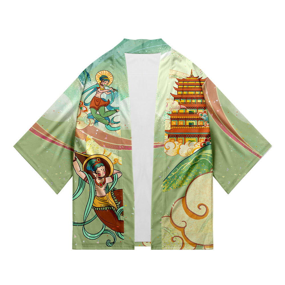 | nameOriginal | Cross-border supply 2022 summer 3D national fashion mural printed neutral clothes ethnic Japanese cardigan dress top |