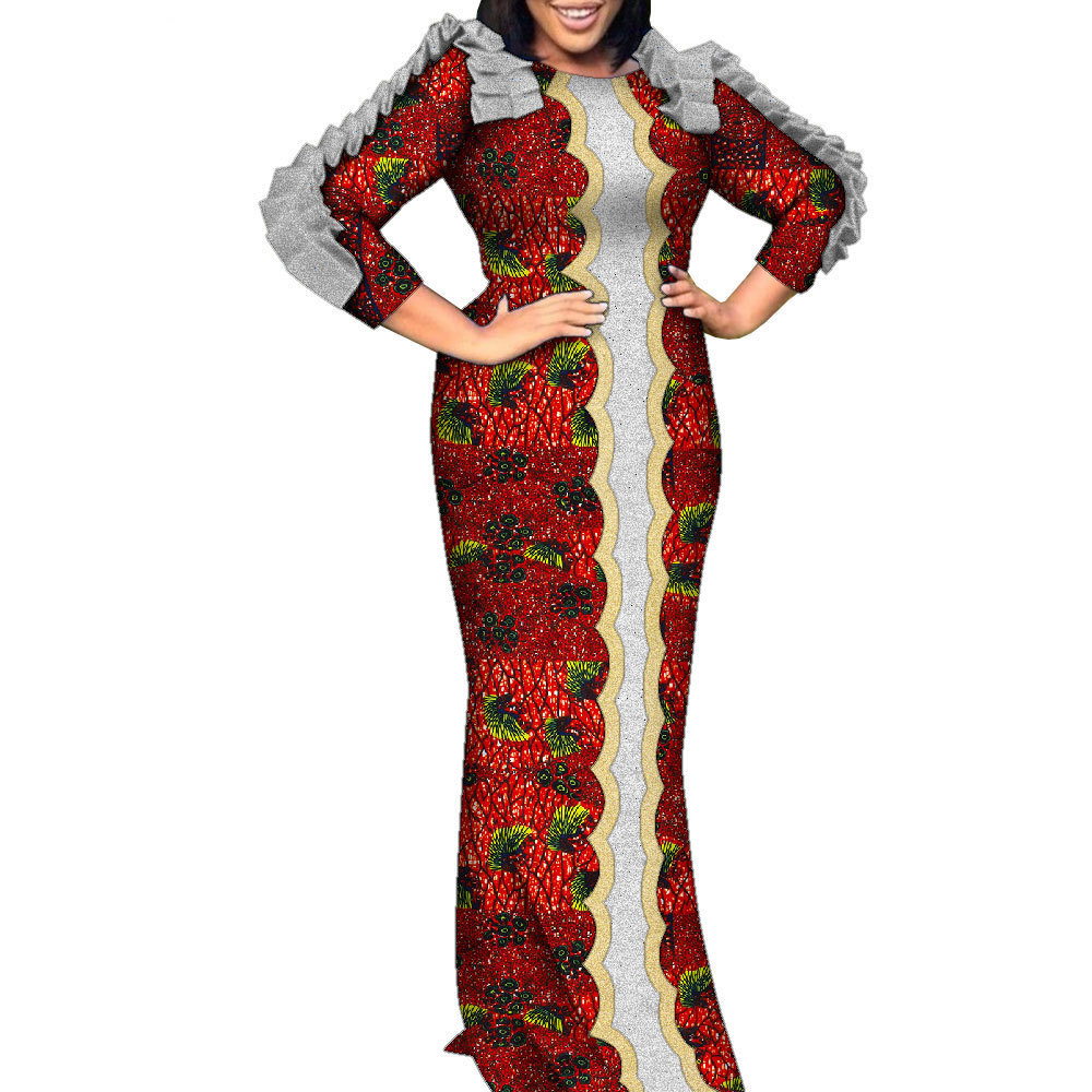 | nameOriginal | Cross-border supply African print stitching sequins high waist long sleeve wedding party dress Ankara ethnic costume |