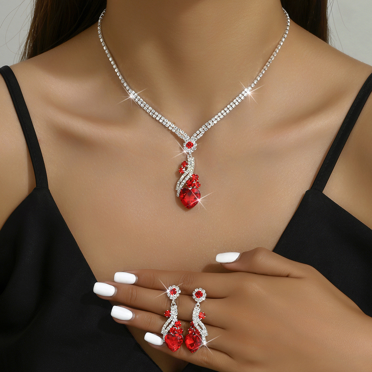 | nameOriginal | Cross-border supply European and American hot selling bridal necklace suit high-end all-match Crystal peach heart clavicle chain earrings two-piece set |
