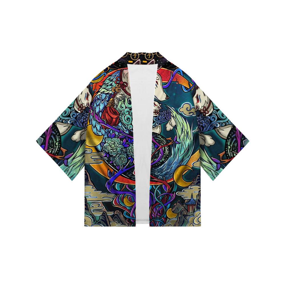 | nameOriginal | Cross-border supply FOX Fantasy Art 3D printing feather woven 3/4 sleeve robe shirt thin kimono cardigan trend |