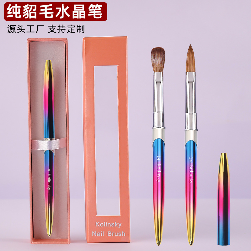 | nameOriginal | Cross-border supply mink manicure crystal pen colorful pole Kolinsky Siberian carved nail brush set |