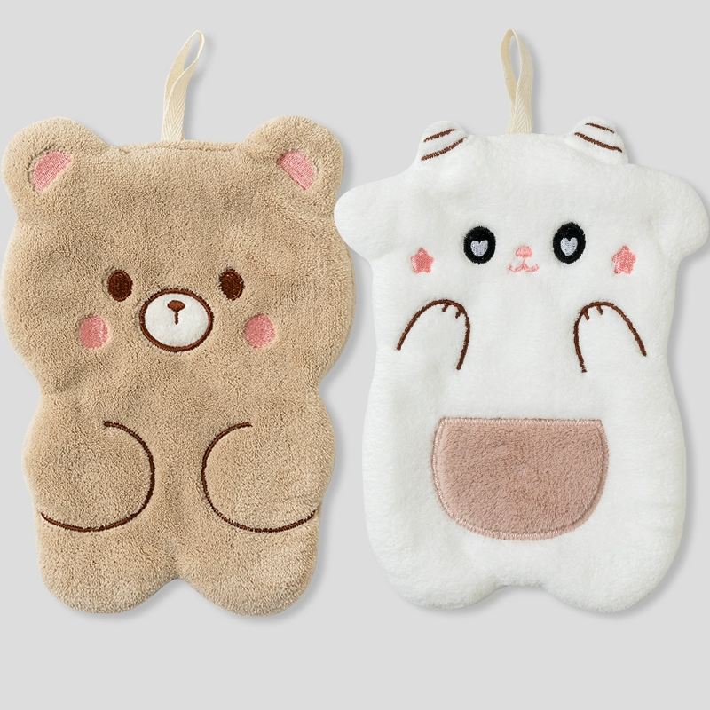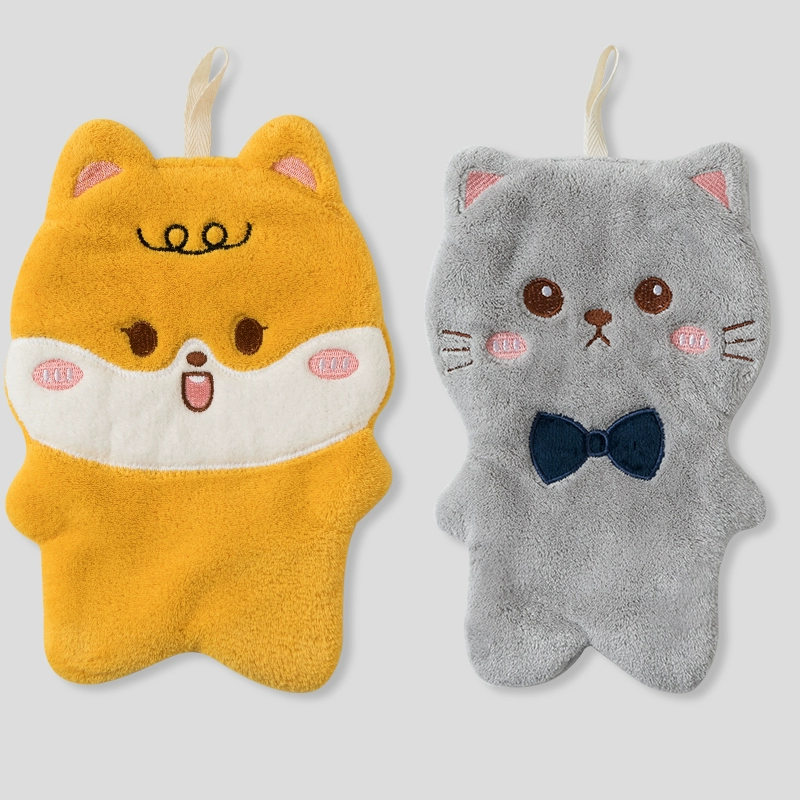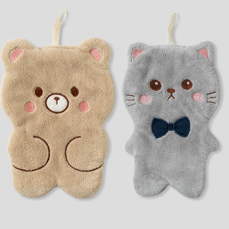 | nameOriginal | Cross-border supply new cartoon hand towels can be hung in the kitchen coral velvet embroidered hand towels cartoon small towels handkerchiefs |