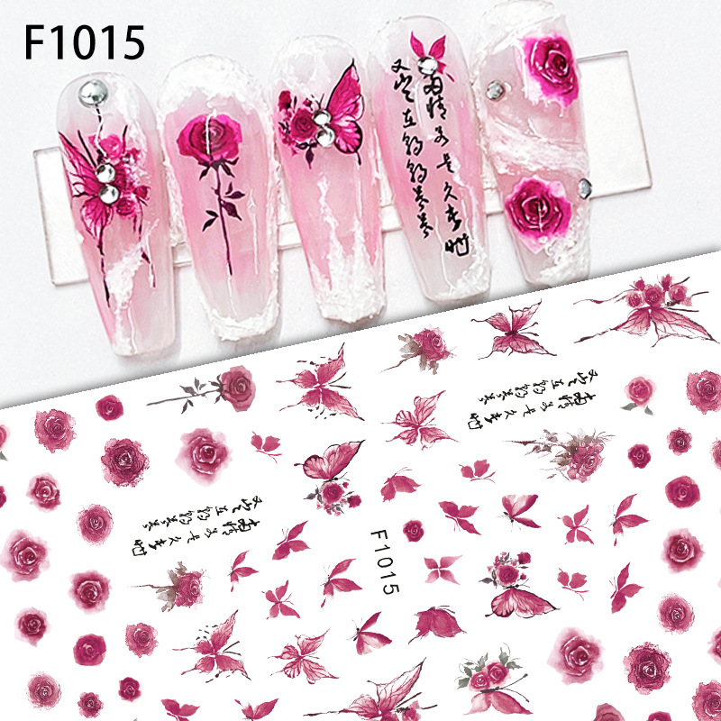 | nameOriginal | Cross-border supply of blooming art rose henna paper butterfly English letter flower nail nail stickers flower ornaments |