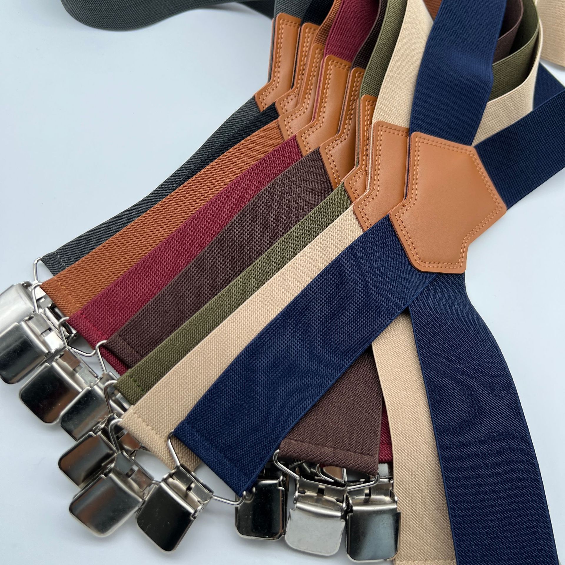 Cross-border supply of European and American men’s 5cm four-clip strap X-shaped double-sided large clip strap shoulder strap manufacturers direct supply