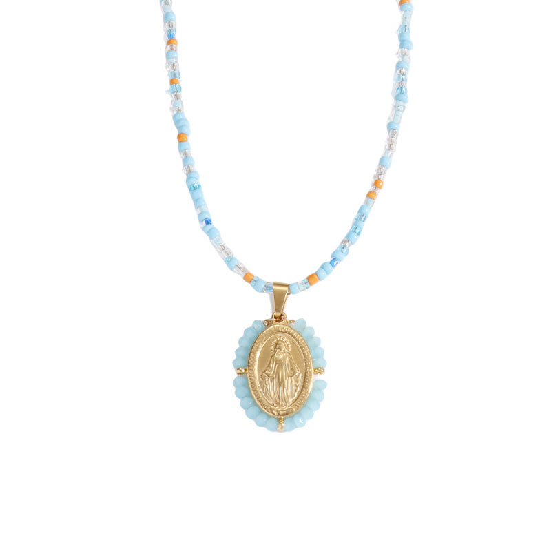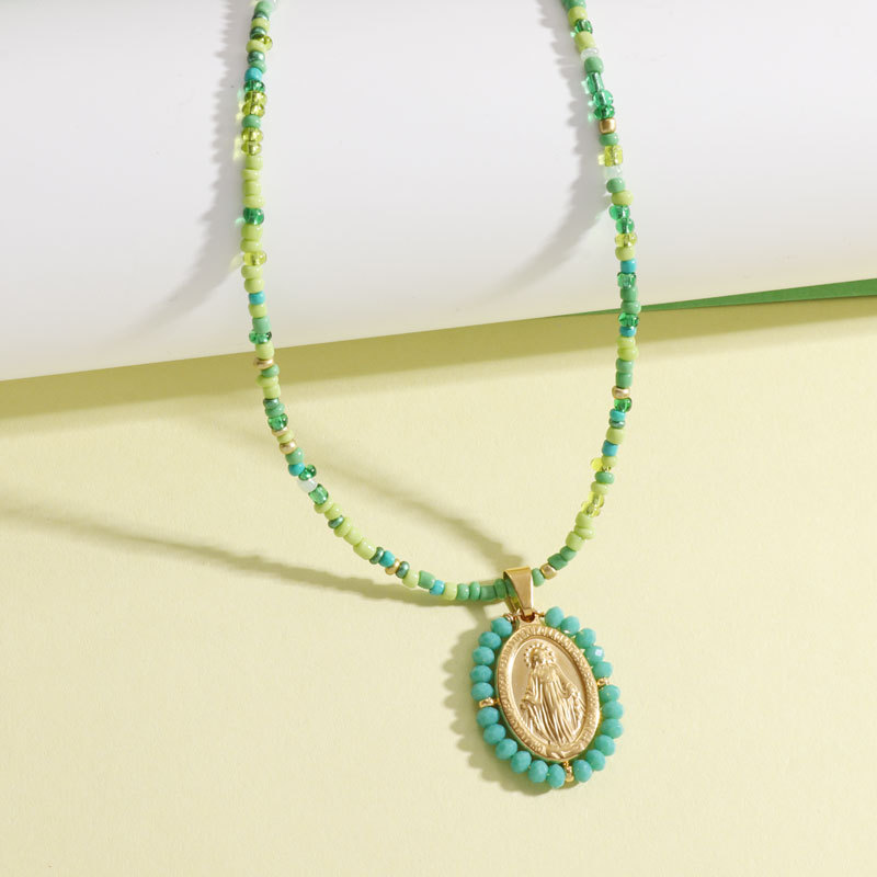 | nameOriginal | Cross-border supply of natural turquoise pendant European and American fashion trend all-match necklace round Virgin pattern jewelry |