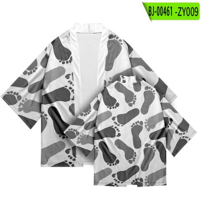 | nameOriginal | Cross-border supply summer 3D all kinds of footprints pattern printing black adult ethnic Japanese top women's kimono |
