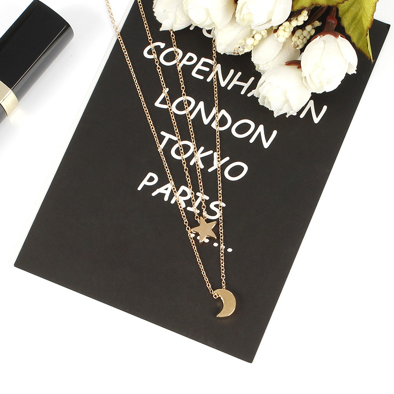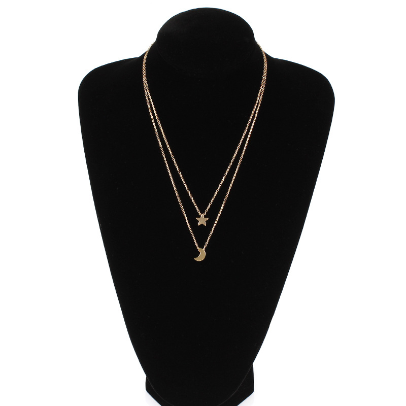 | nameOriginal | Cross-border supply wholesale fashion jewelry metal Moon five-pointed star tassel double-layer necklace |