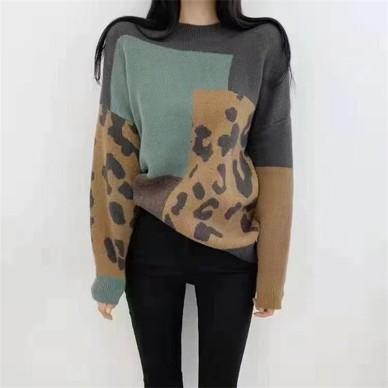 | nameOriginal | Cross-border Sweater Women's Leopard Print Autumn and Winter New 2023 Retro Loose Outer Wear Laid-back Style Knitted Elegant Pullover Top |