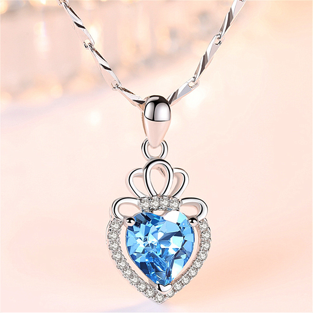 | nameOriginal | Cross-border TikTok silver necklace women's heart-shaped pendant simple all-match clavicle chain Japanese and Korean style lovely diamond topaz pendant |
