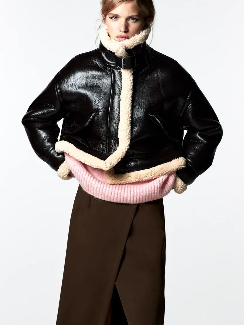 | nameOriginal | Cross-border trade 2022 autumn European and American style zaura women's fleece imitation leather coat lapel winter fashion jacket |