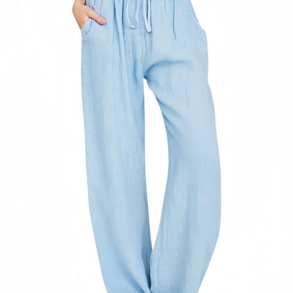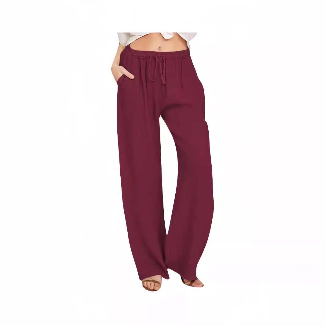 | nameOriginal | Cross-border Trade Amazon temu2024 Women's Casual Pants Summer Wide-leg Drawstring Loose Wide-leg Pants with Pocket |