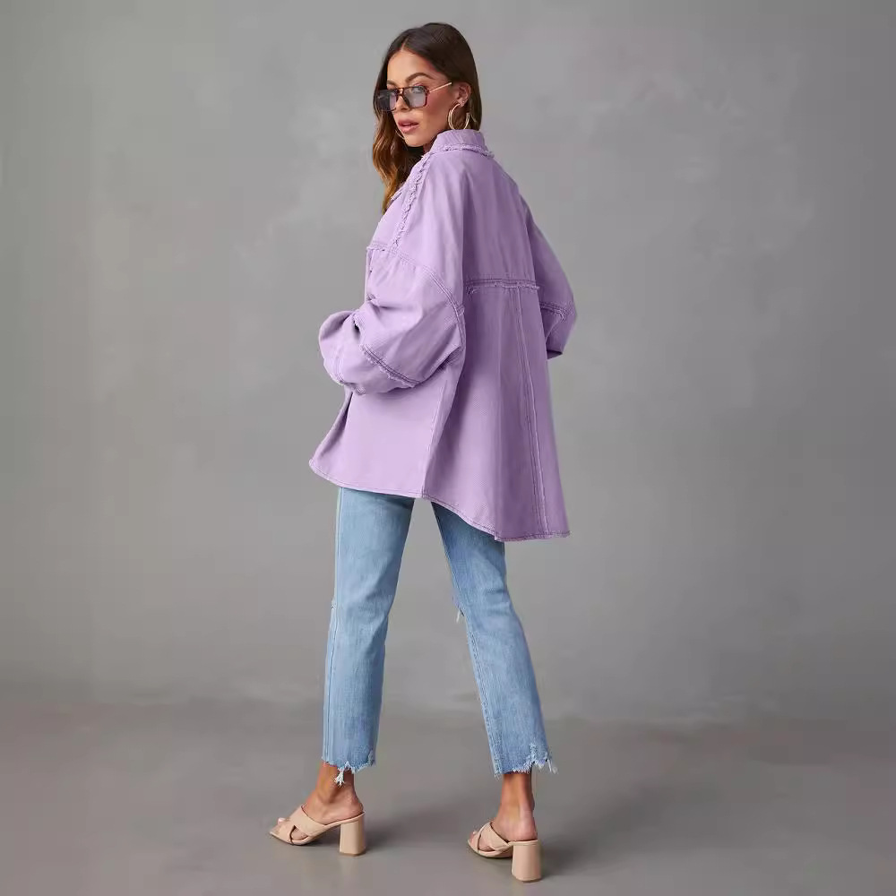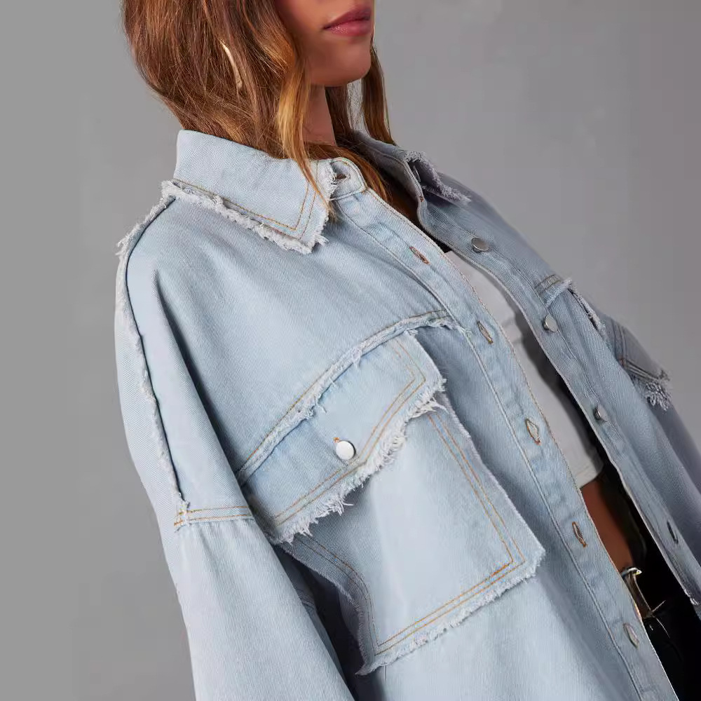 | nameOriginal | Cross-border trade casual long sleeve denim jacket 2024 autumn new washed solid color long jacket |