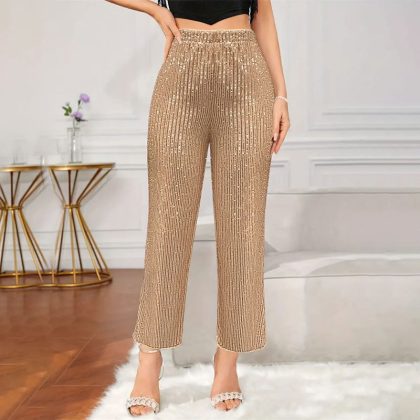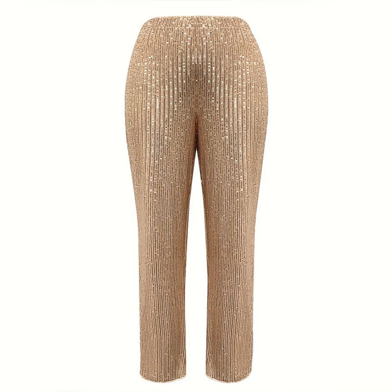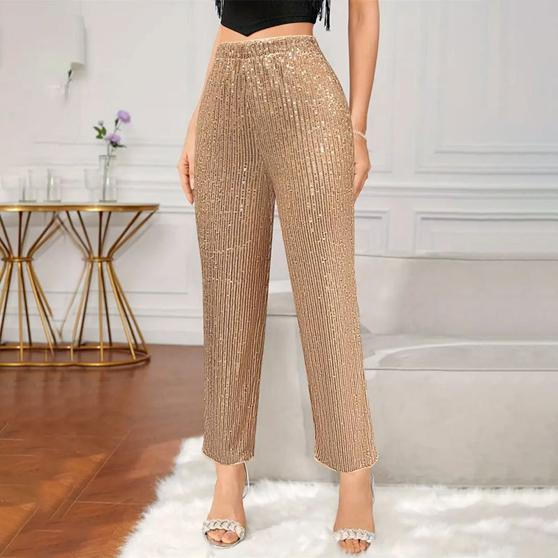 | nameOriginal | Cross-border Trade Party Bead Slim-fit High Waist Straight Casual Pants Amazon Personality Sequin Pants Women's Wear |