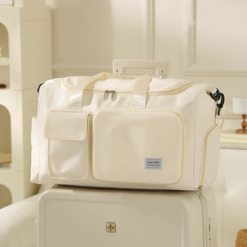 | nameOriginal | Cross-border travel luggage bag, sports handbag Fitness Bag, shoulder weekend overnight bag women's beige travel bag |