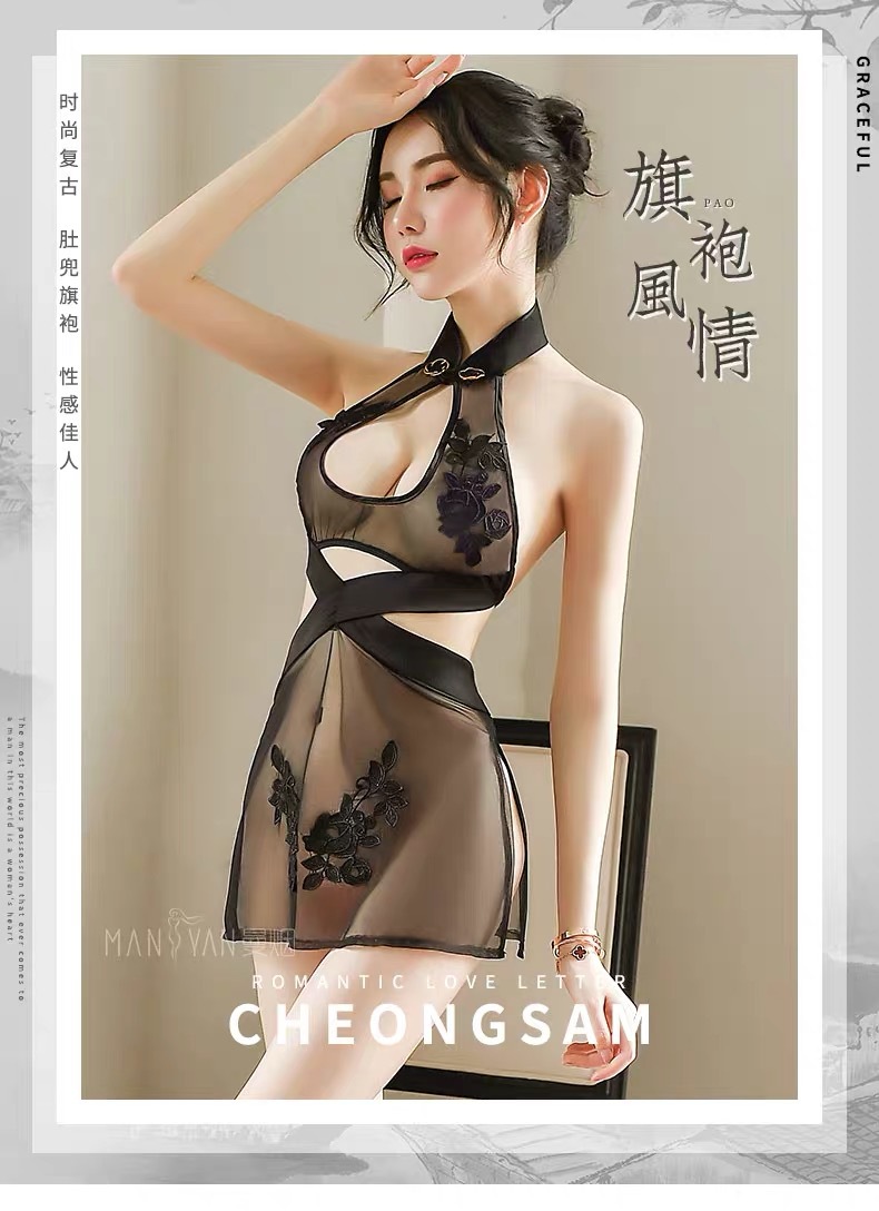 | nameOriginal | Cross-border uniform sexy underwear hanging neck perspective gauze sexy transparent nightgown embroidered Cheongsam wholesale |
