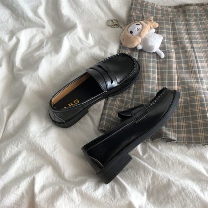 Cross-border Uniform Shoes Small Leather Shoes Spring New British Style Thick Heel Summer Loafers Soft Sole JK Black Flats Women’s Shoes
