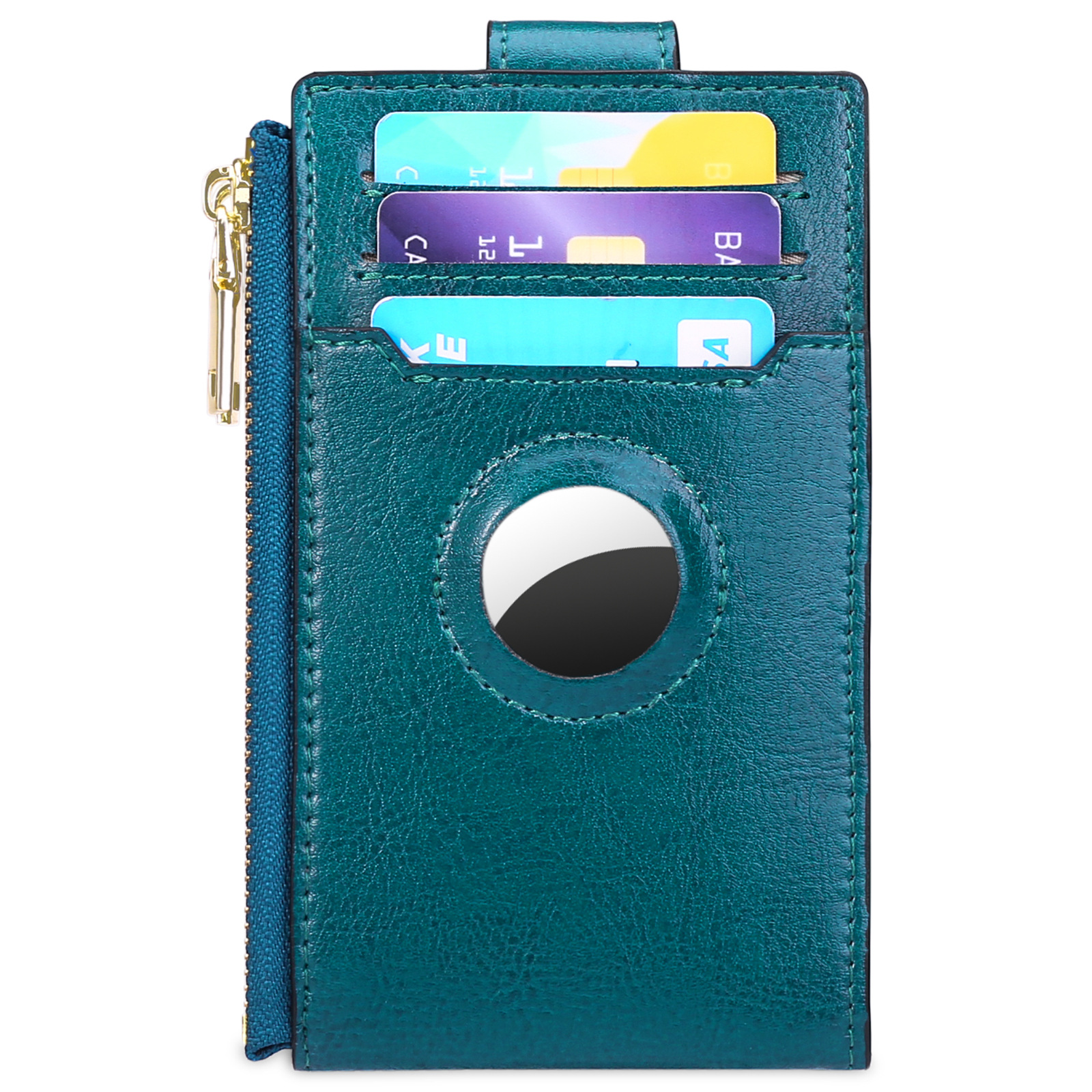 Cross-border vintage leather zipper card holder Apple airtag tracker card holder two-layer oil wax cowhide coin purse
