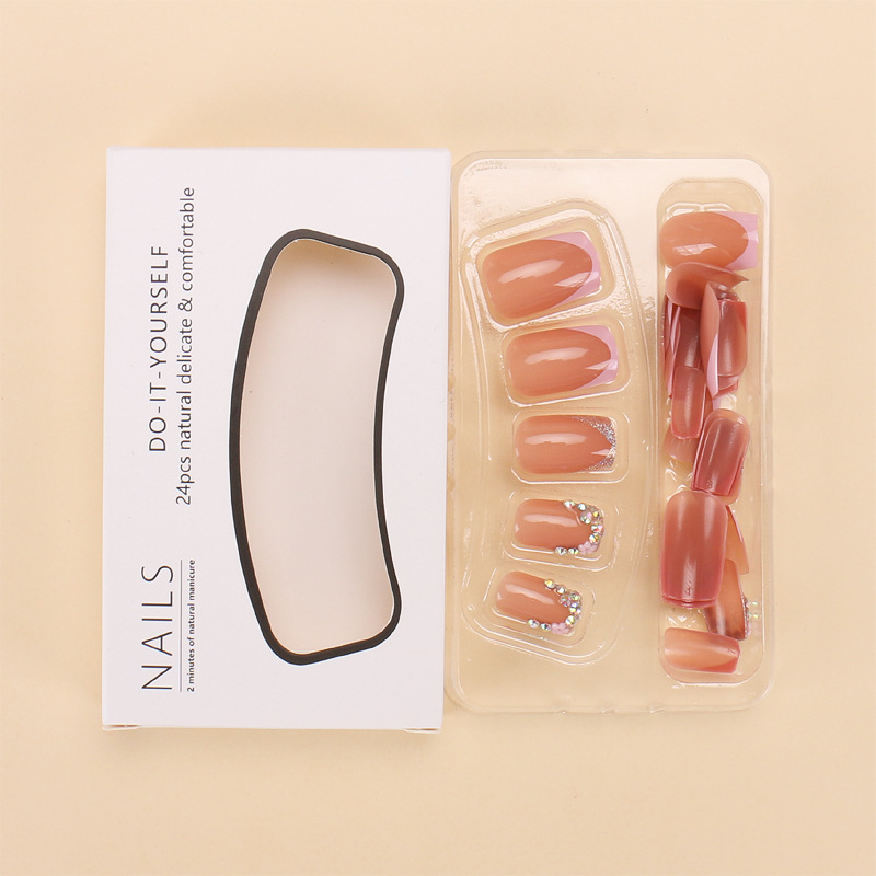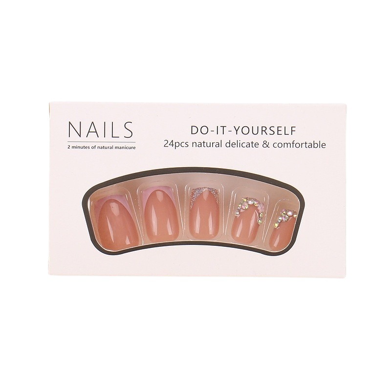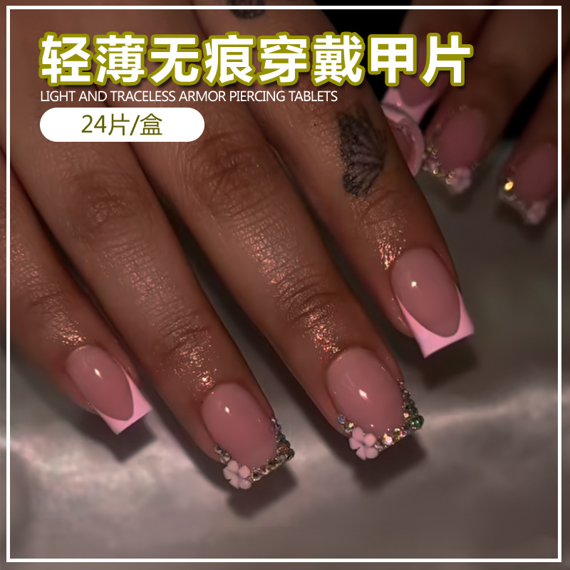 Cross-border wearing armor wholesale finished 24 pieces of nail art patches rhinestone flowers removable European and American hot-selling fake nail tablets