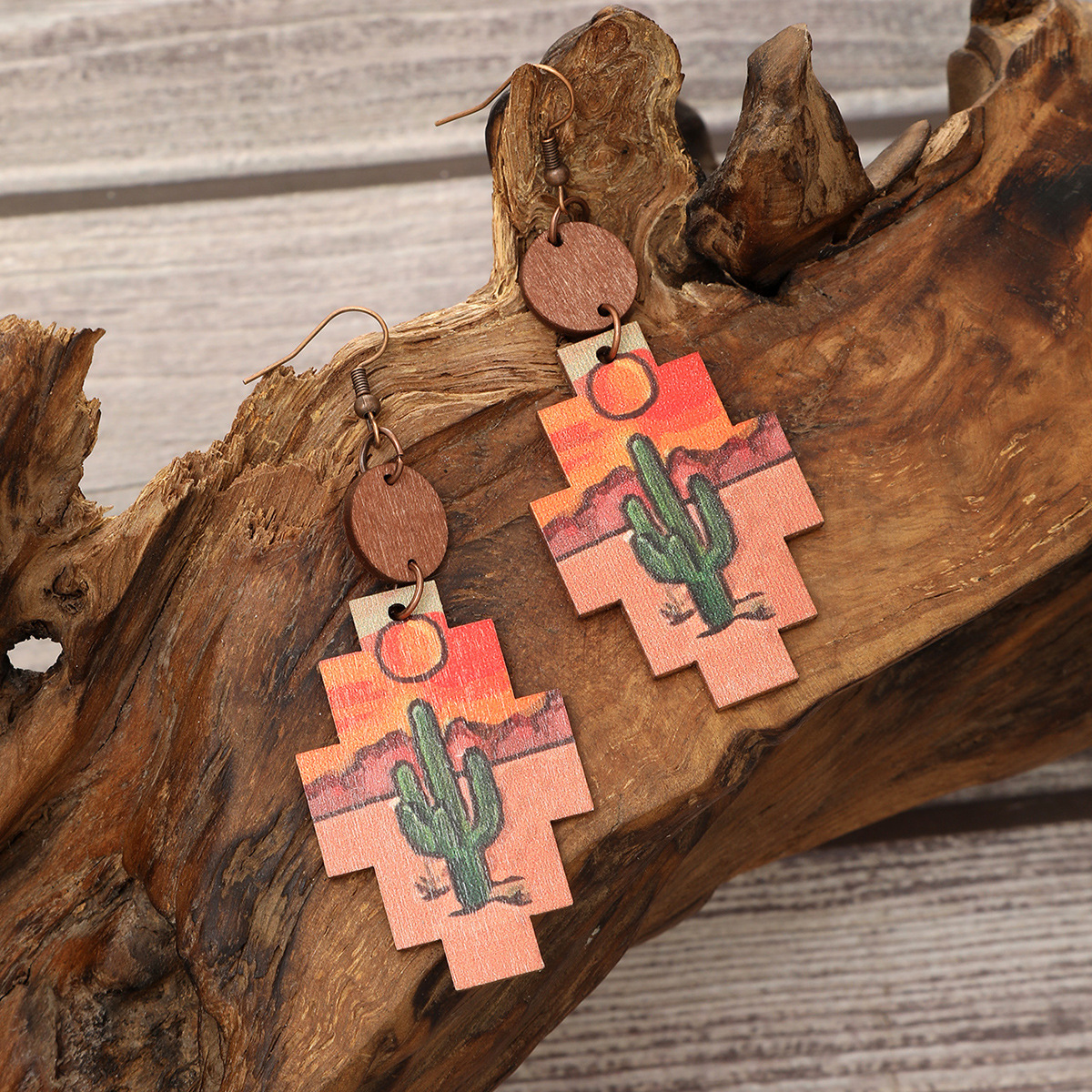 | nameOriginal | Cross-border western style cactus sunflower earrings wooden earrings for women AliExpress Amazon |