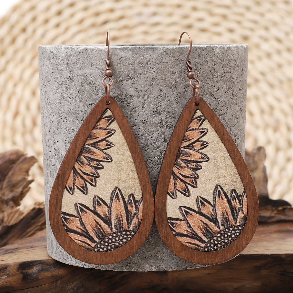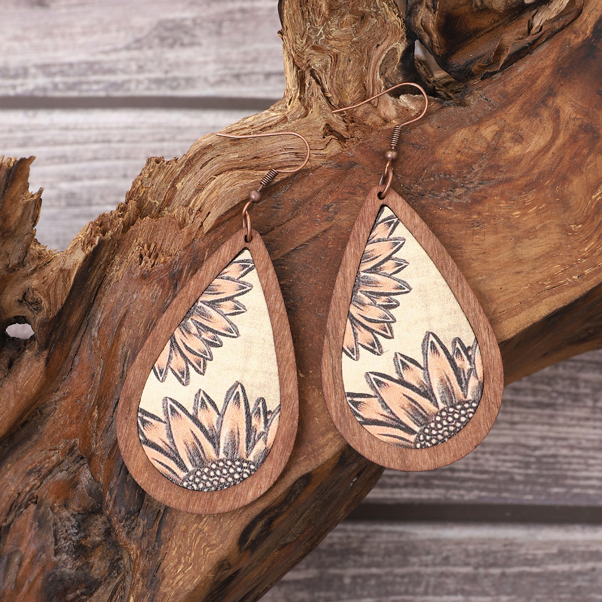 | nameOriginal | Cross-border western style vintage water drop wooden earrings sunflower earrings for women Amazon AliExpress |