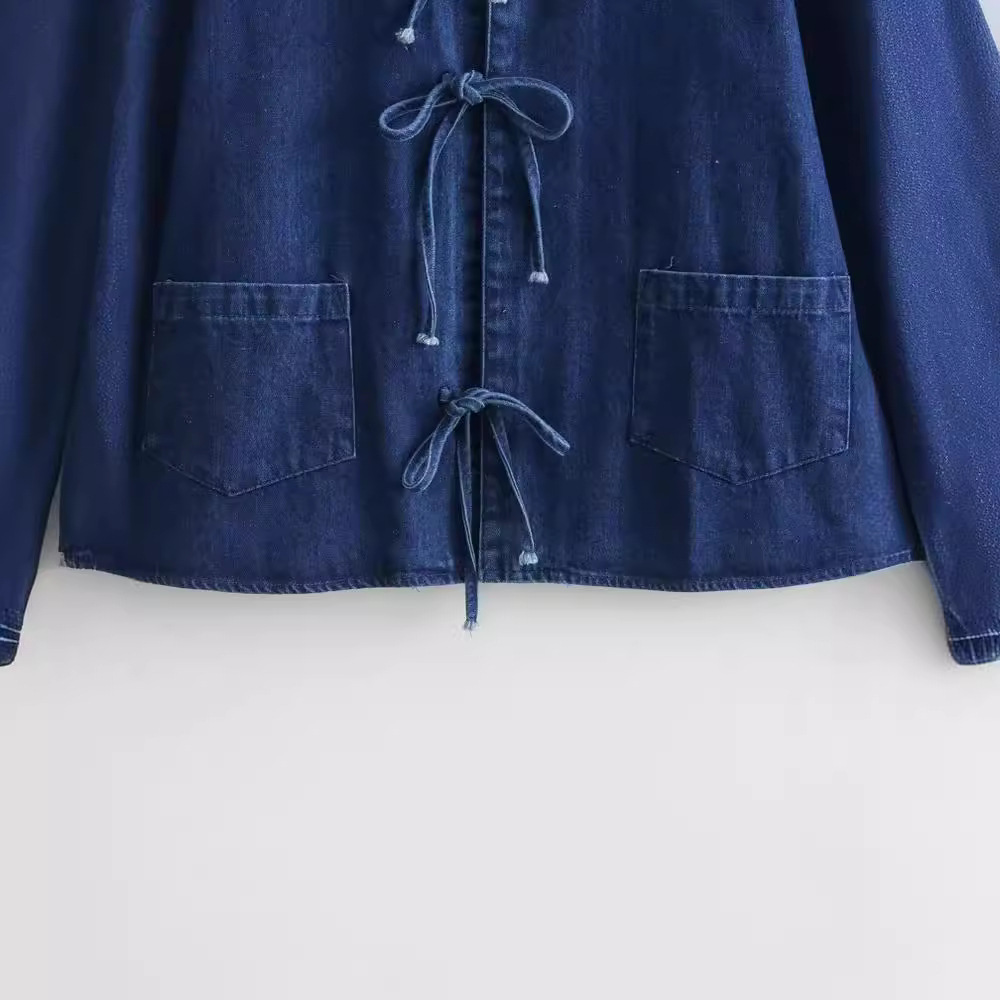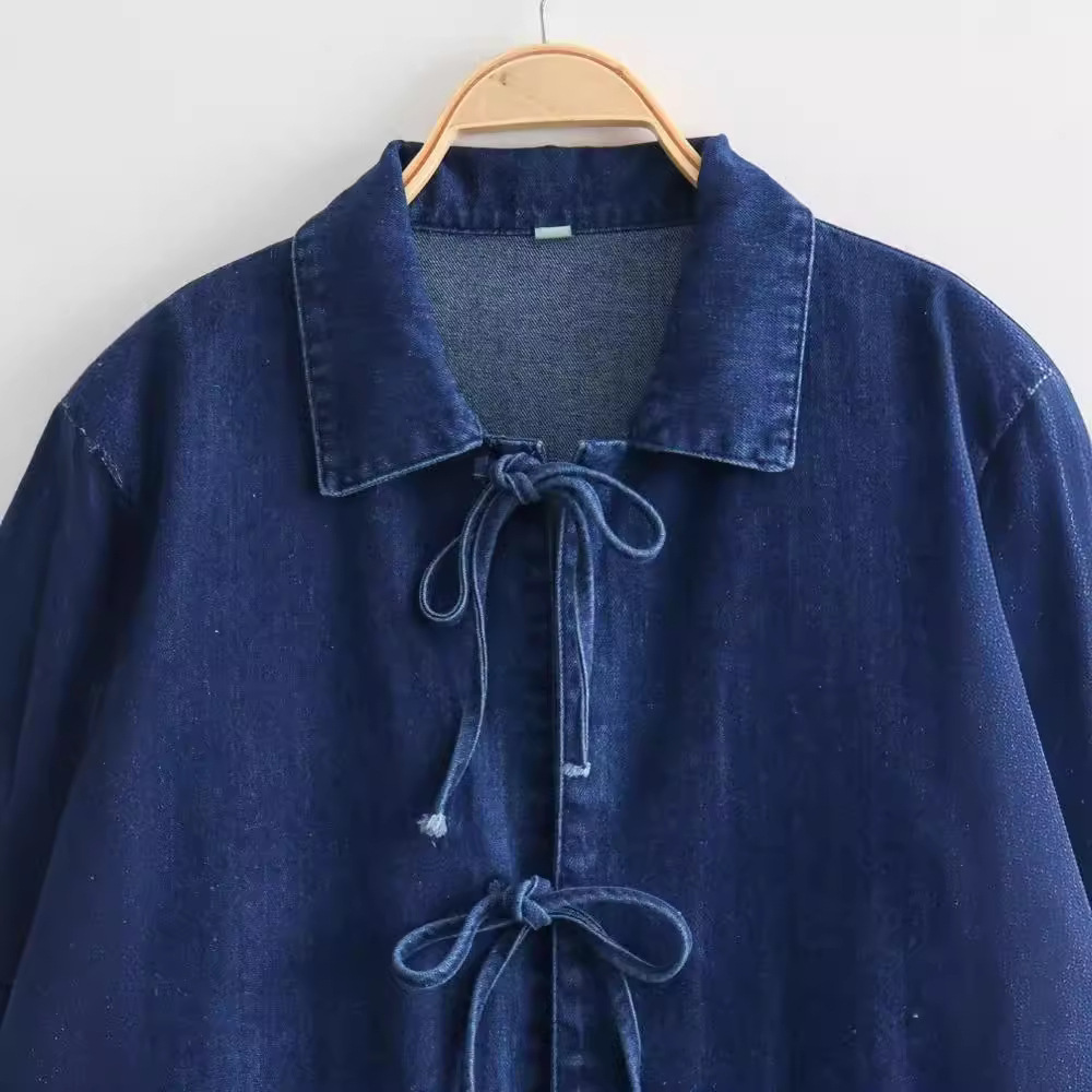 | nameOriginal | Cross-border wholesale 2024 European and American fashion women's casual fashion Joker lapel lace-up washed Denim long sleeve shirt |