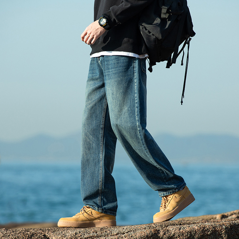 Cross-border wholesale 2024 new men's jeans spring and autumn trendy straight loose casual long pants one-piece delivery