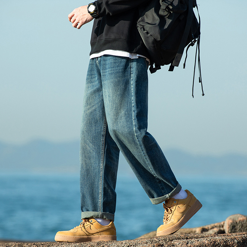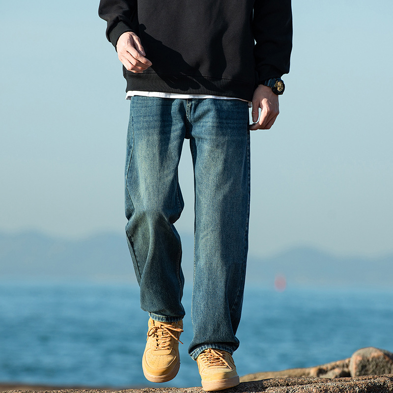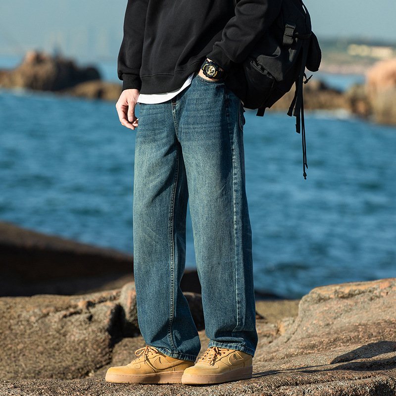 Cross-border wholesale 2024 new men’s jeans spring and autumn trendy straight loose casual long pants one-piece delivery