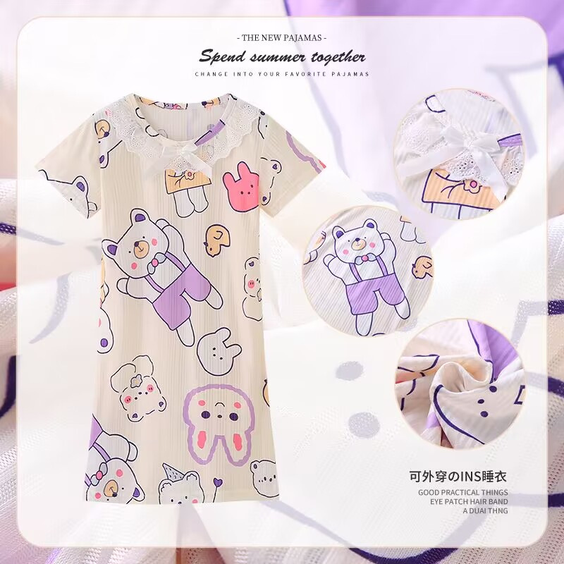 | nameOriginal | Cross-border Wholesale Children's Nightgown Girls Pajamas Summer Princess Lace Short Sleeve Nightgown Home Clothes Summer Air Conditioning Clothes |