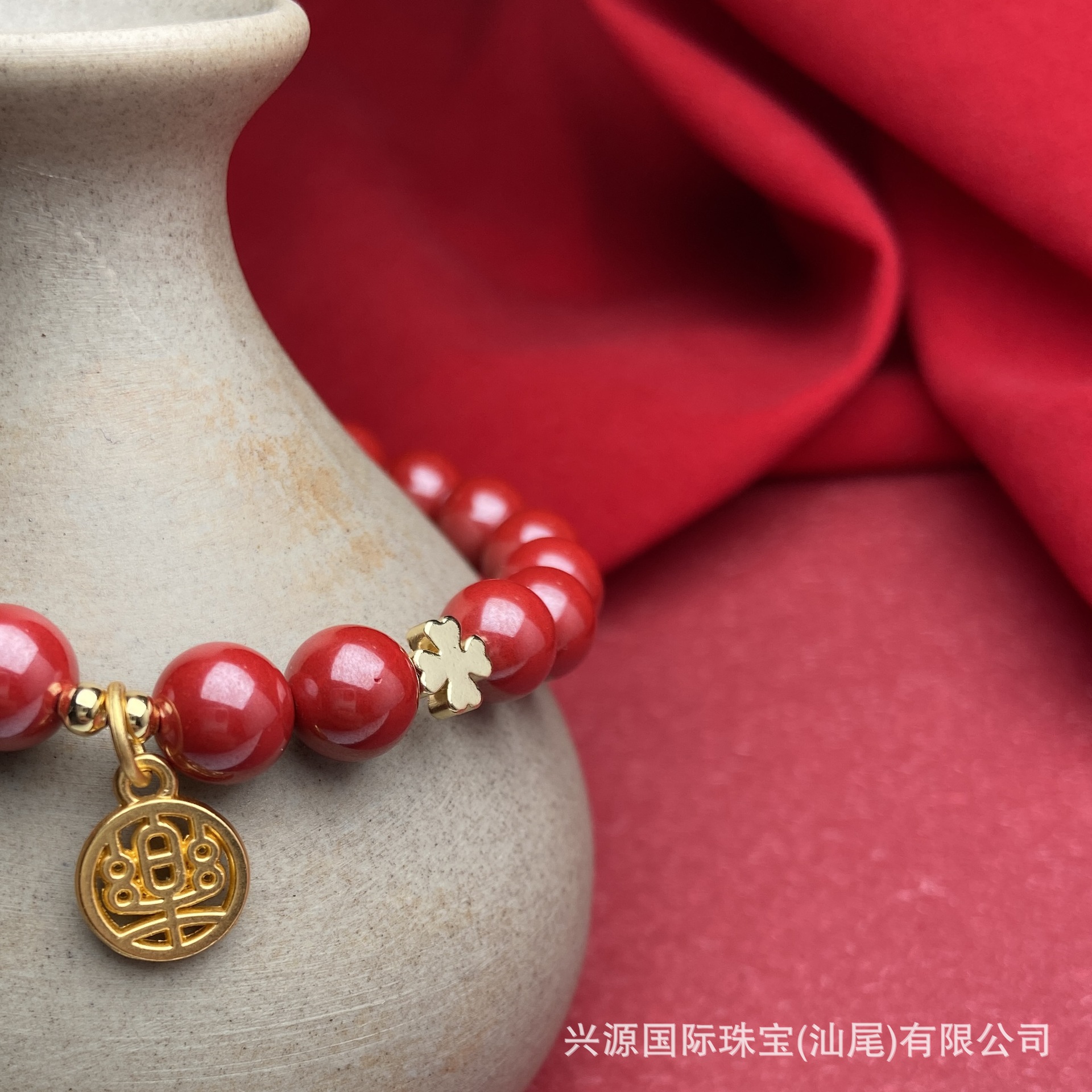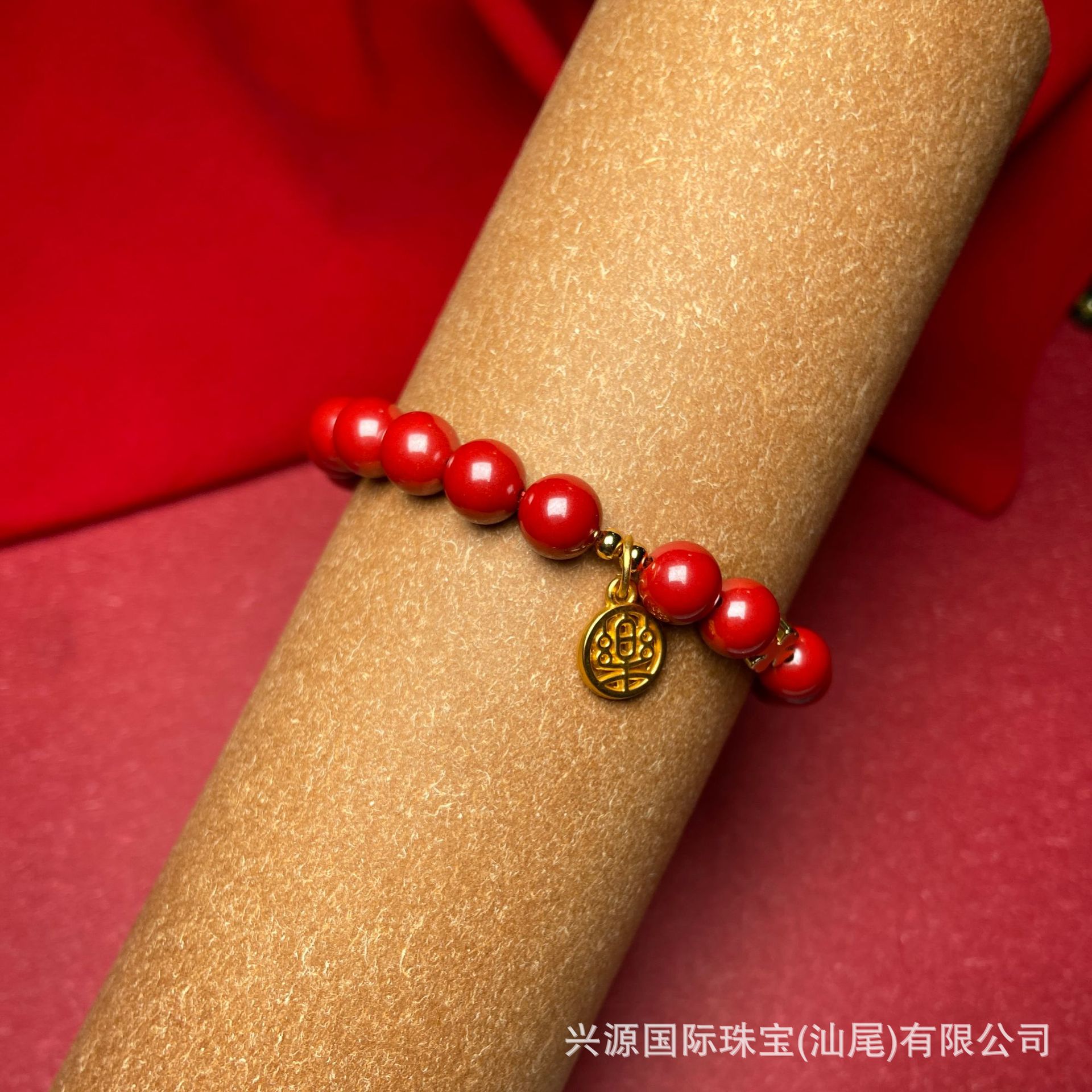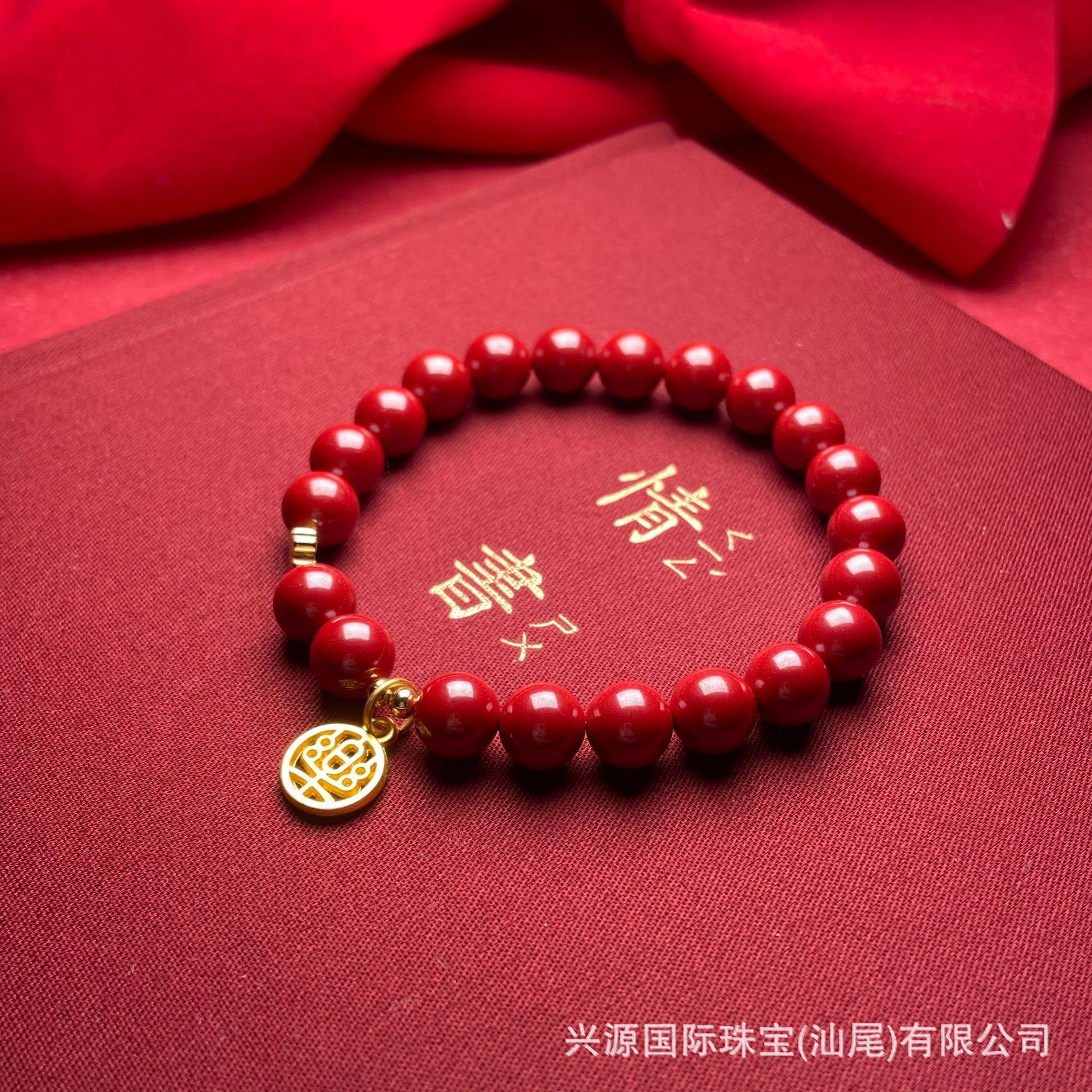 | nameOriginal | Cross-border wholesale DIY cinnabar bracelet women's round beads lucky beads high-content bracelet birth year double circle antique jewelry |