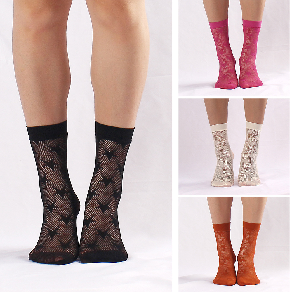 Cross-border wholesale five-pointed star short net stockings jacquard fishnet stockings short socks sexy black socks stars