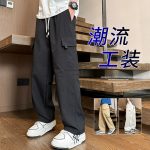 Cross-border wholesale overalls men’s autumn and winter loose toe trendy handsome Harlan pants spring teenagers nine points